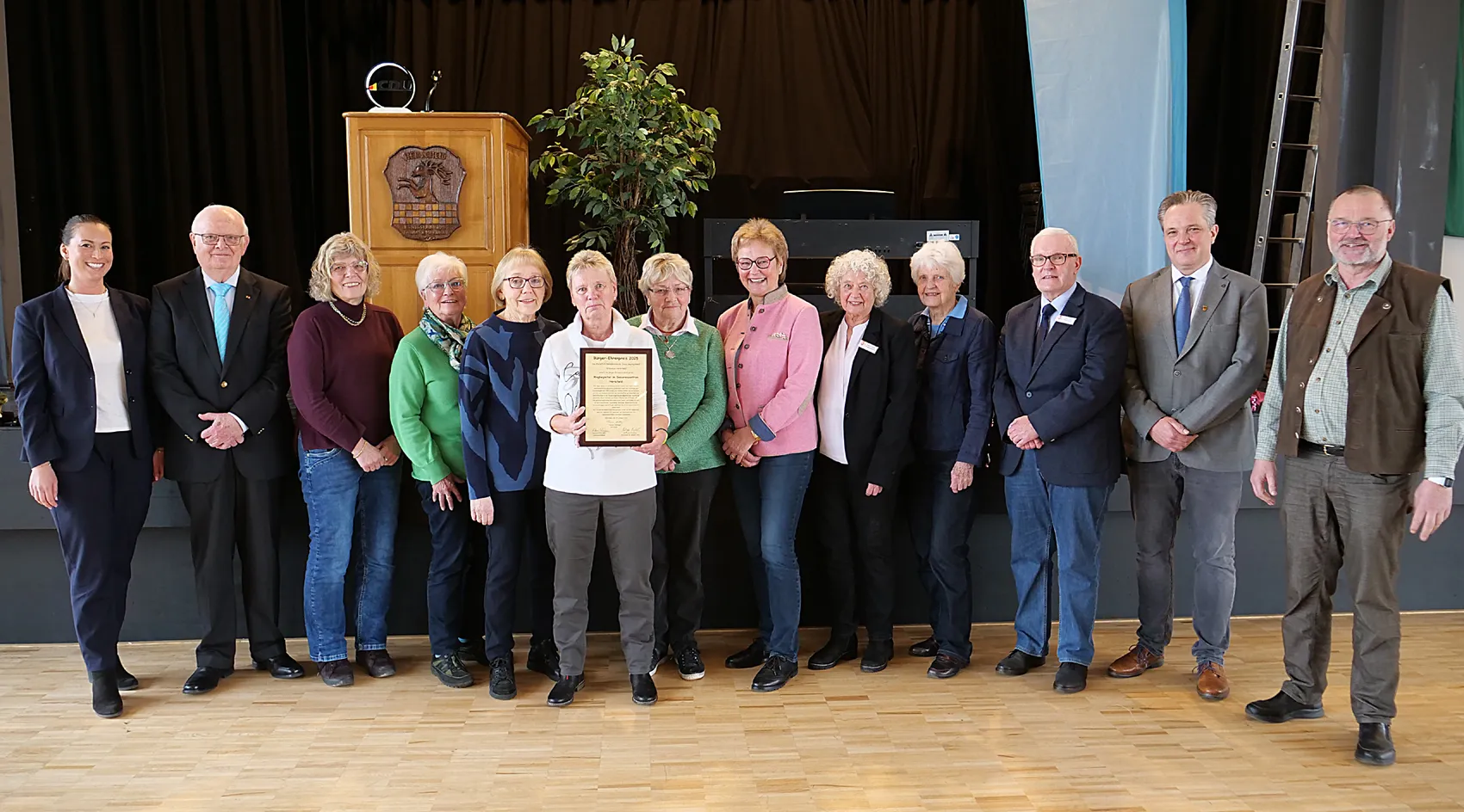 Auf dem Neujahrsempfang der CDU Herscheid sind die „Wegbegleiter“ aus dem Seniorenzentrum Auf dem Rode mit dem Bürgerehrenpreis der Ortspartei ausgezeichnet worden. Schon 2007 war der Gruppe aus heute drei Männern und 13 Damen der Ehrenpreis zuerkannt worden — nichts hat sich seither an der sozialen Aufgabenstellung und der menschlichen Zuwendung geändert.
