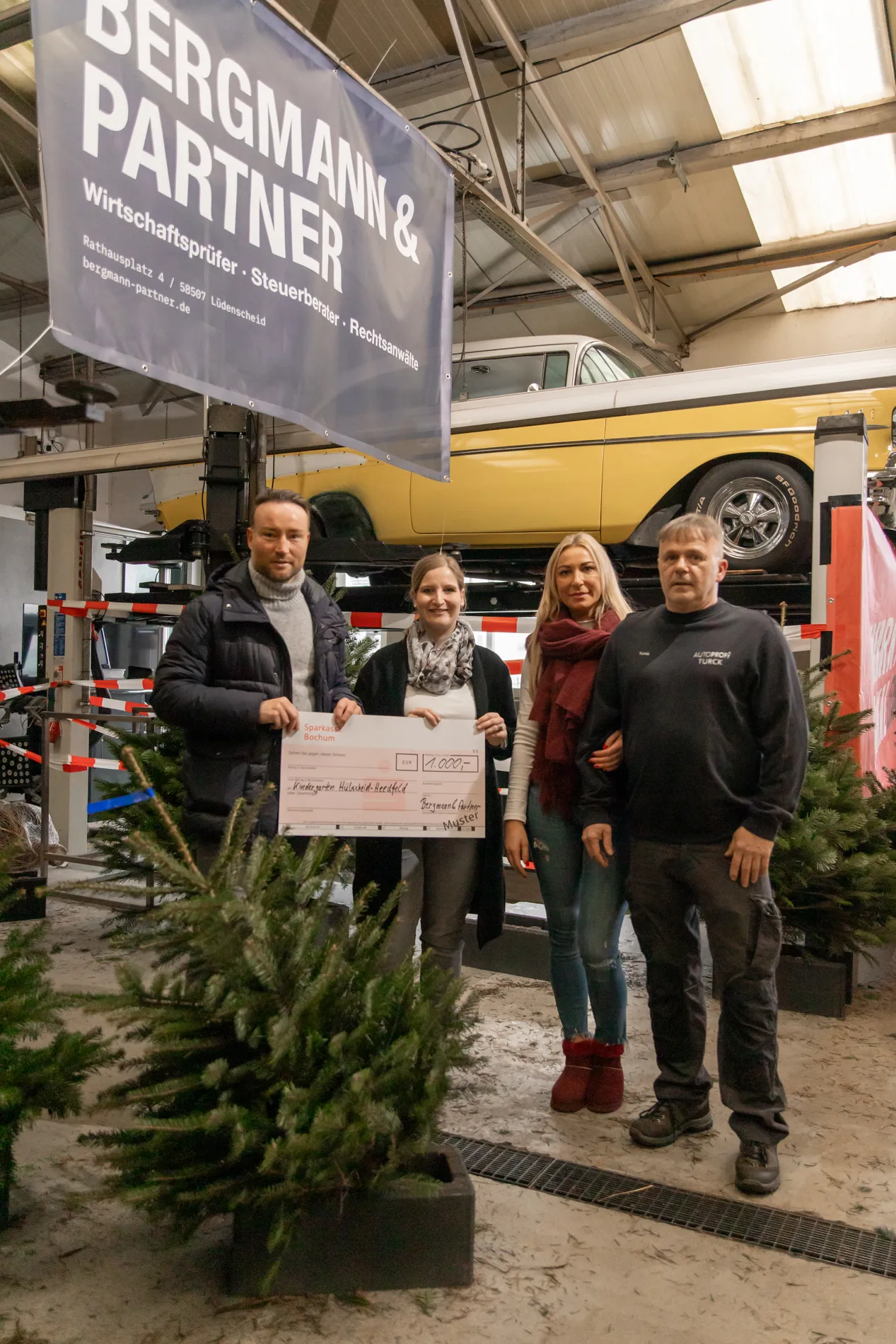 Seit mehr als zwei Jahrzehnten verkauft Frank Turck in der Adventszeit Weihnachtsbäume für den guten Zweck. Auch in diesem Jahr stellte er gemeinsam mit seinem Team den Hof seiner Autowerkstatt an der Hermann-Köhler-Straße zur Verfügung. Der komplette Erlös aus dem Verkauf der zuvor auf eigene Kosten erworbenen Bäume fließt an die evangelische Kita Hülscheid-Heedfeld. Unterstützt wurde die Aktion erneut von der Dekra mit einer Spende in Höhe von 500 Euro.