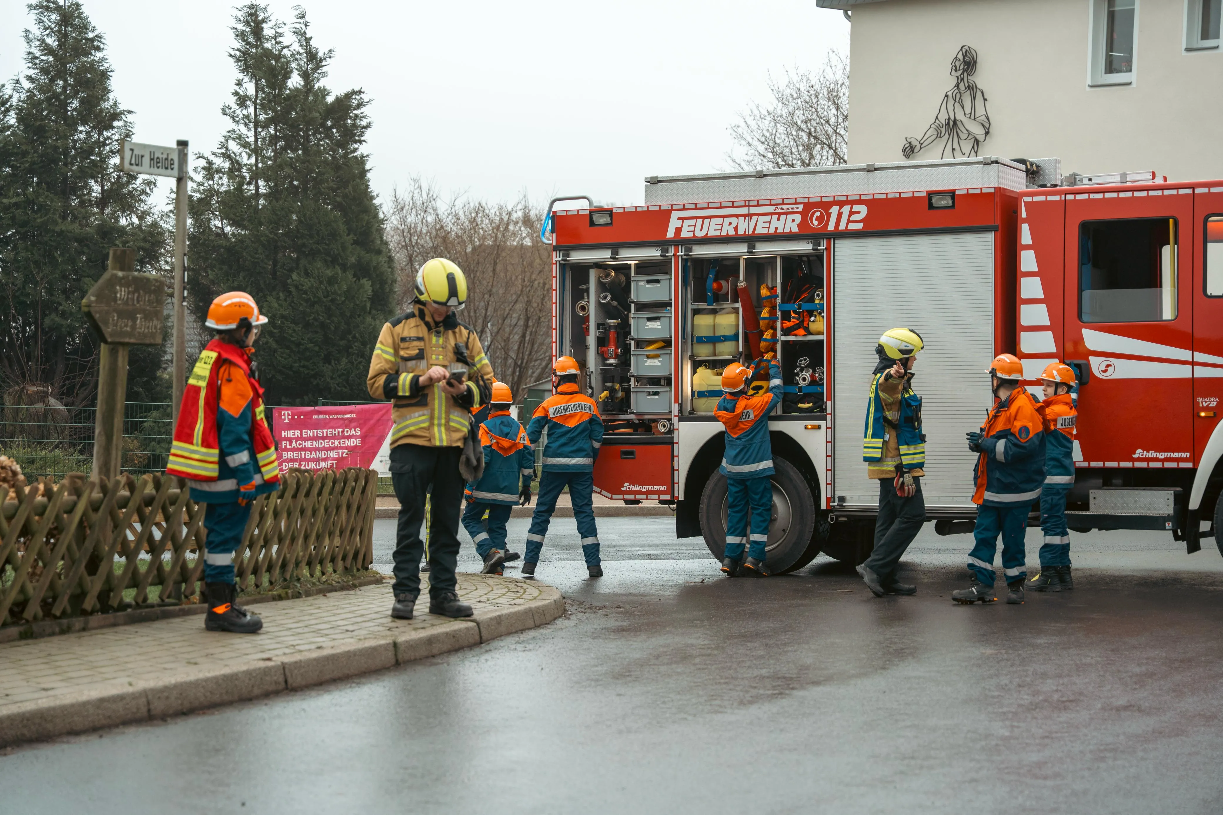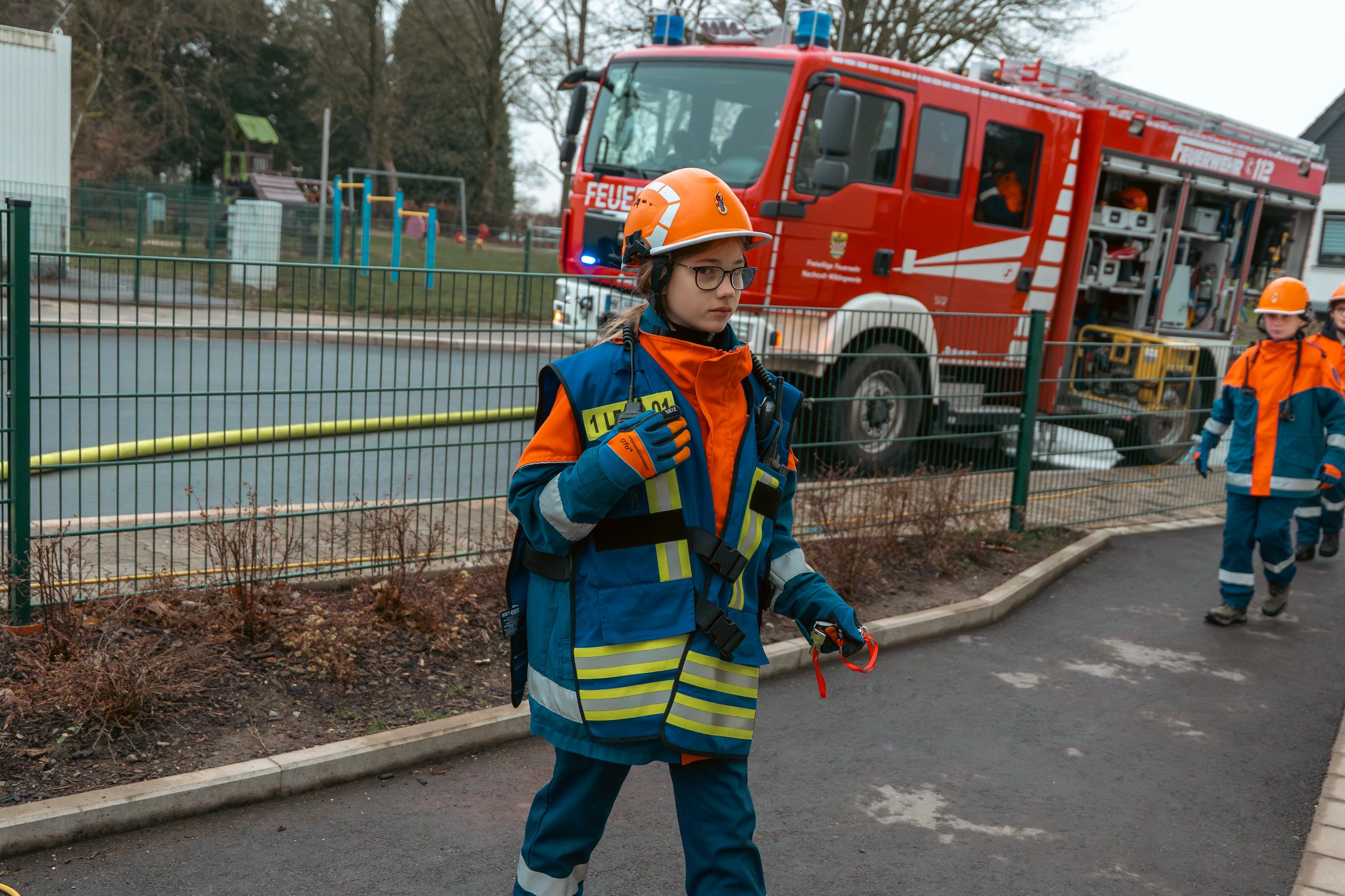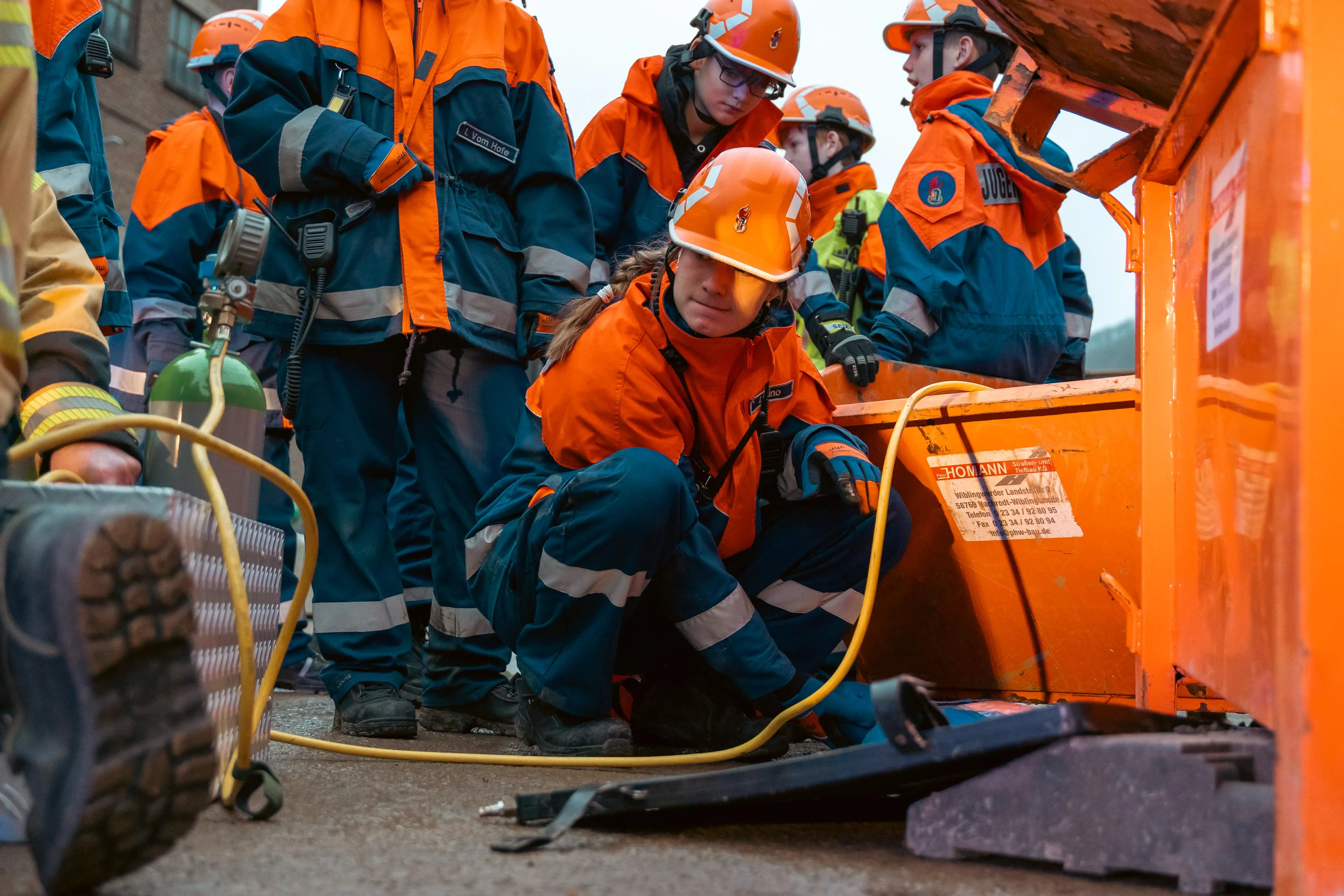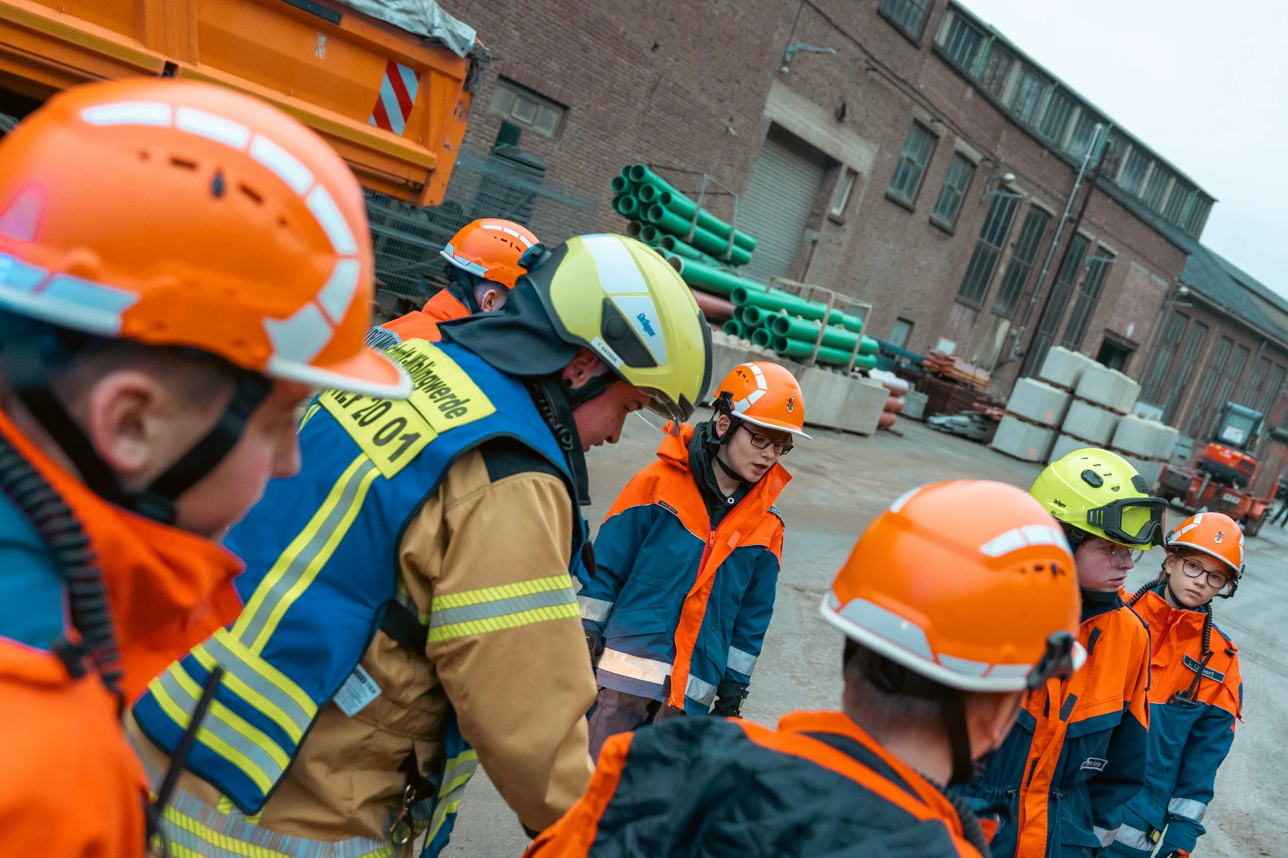 An der Heide brennt ein Papiercontainer. Am Nachmittag geht es weiter nach Nachrodt: Auf dem Gelände des Tiefbauers Homann ist technische Hilfe gefragt. Besonders: Diese beiden Übungen wurden von Mitgliedern der Jugendfeuerwehr selbst vorbereitet. Lea Lüno und Lukas Nowak haben die Szenarien gemeinsam mit ihren Eltern, beide ebenfalls Feuerwehrleute, ausgearbeitet. Verantwortung übernehmen, vorausdenken, Abläufe planen – auch das gehört hier zur Ausbildung.