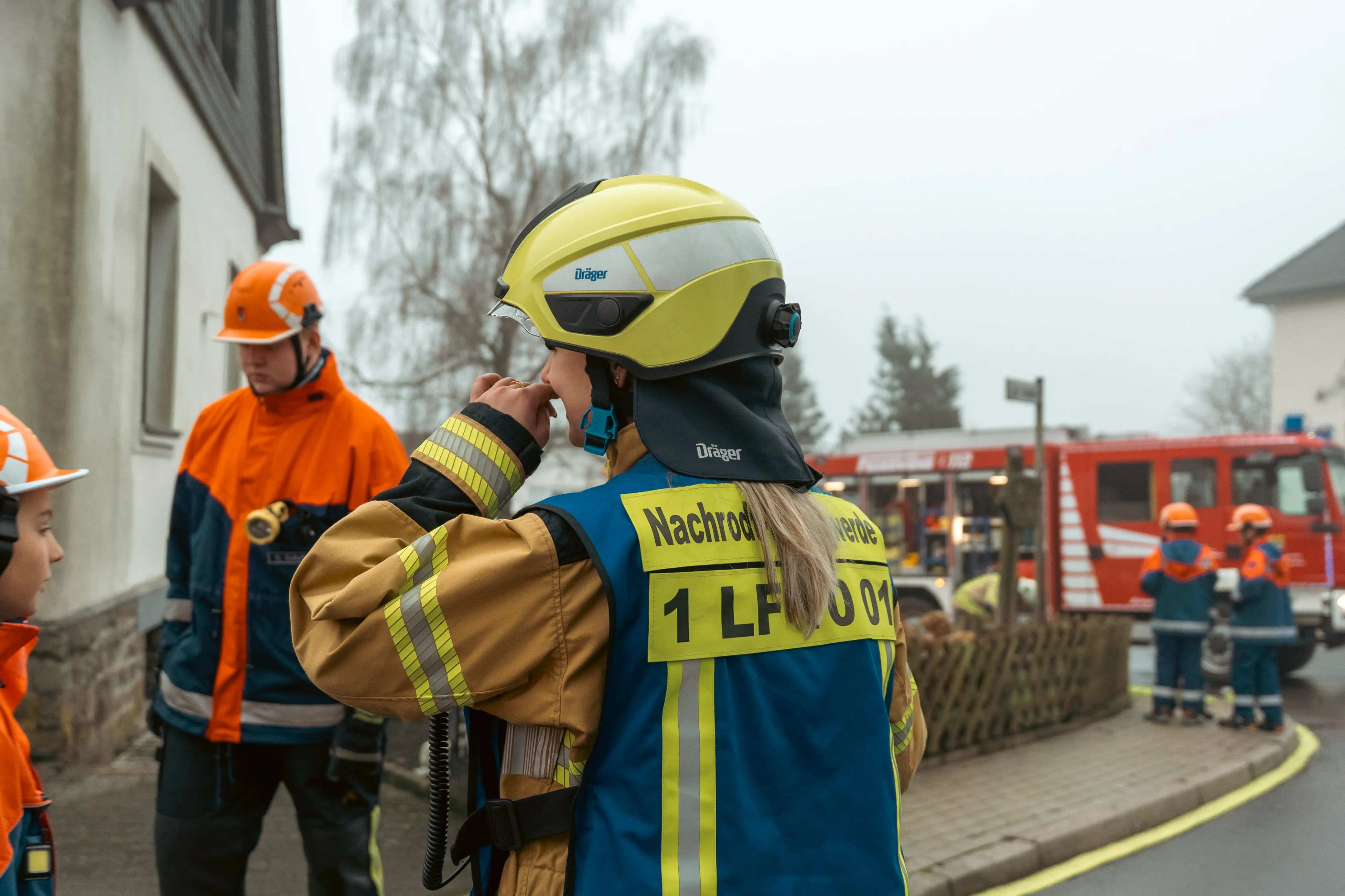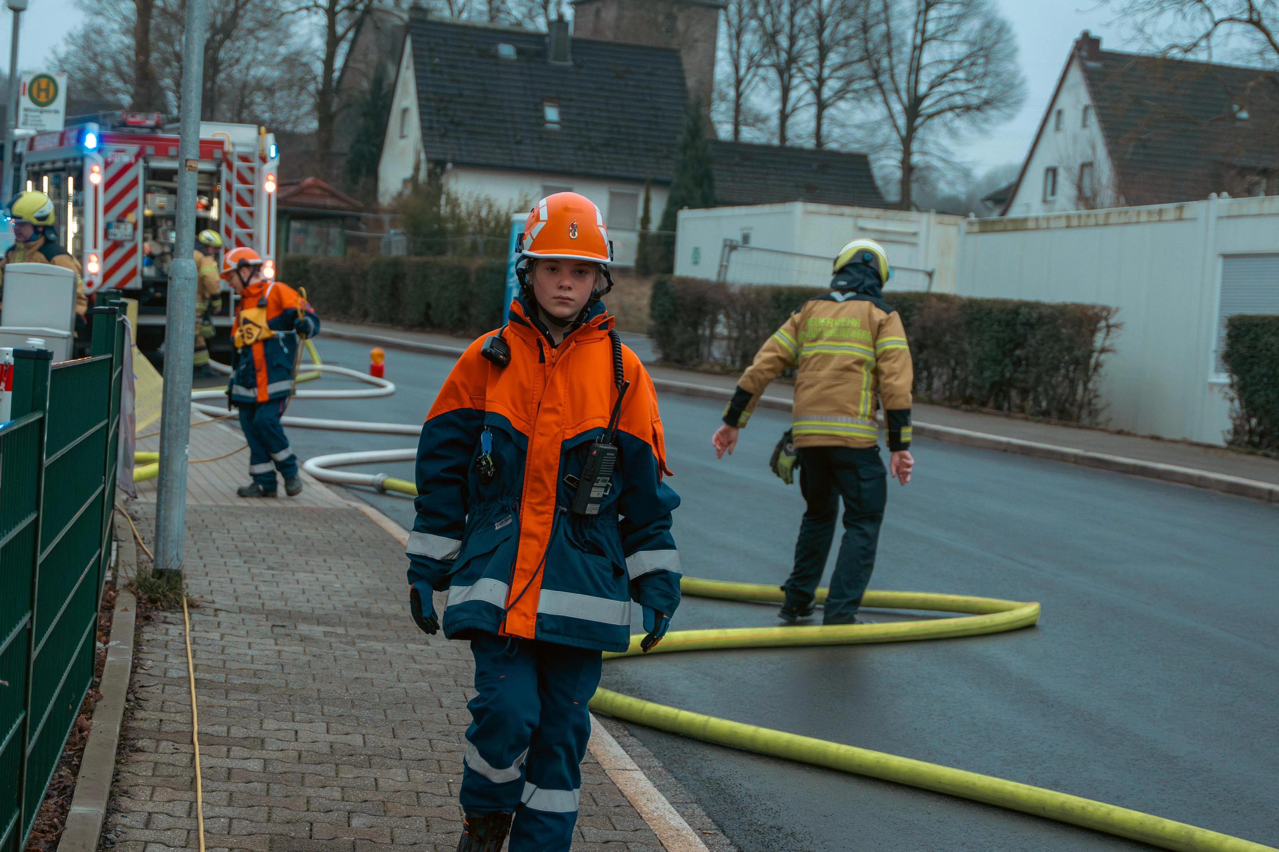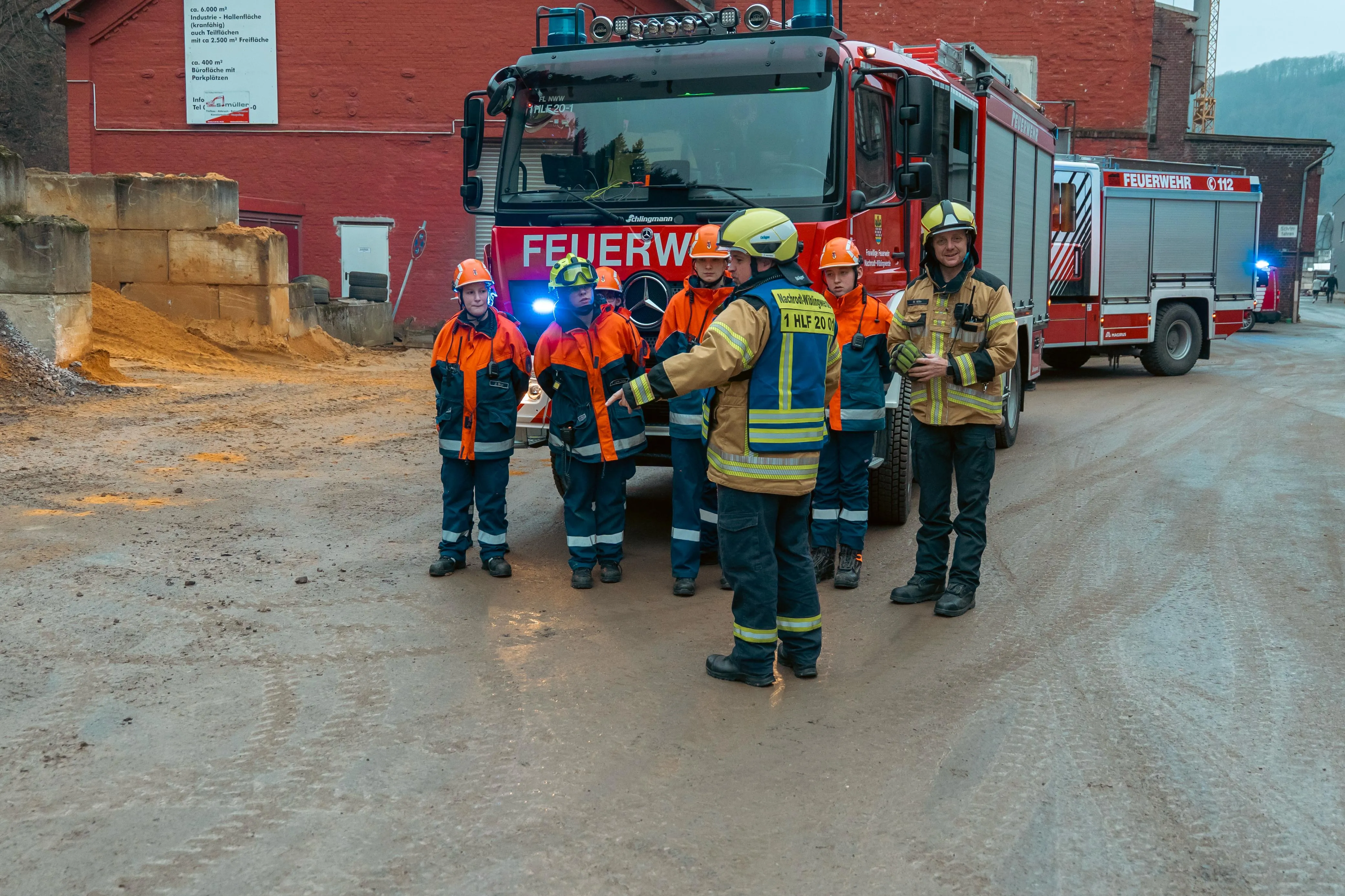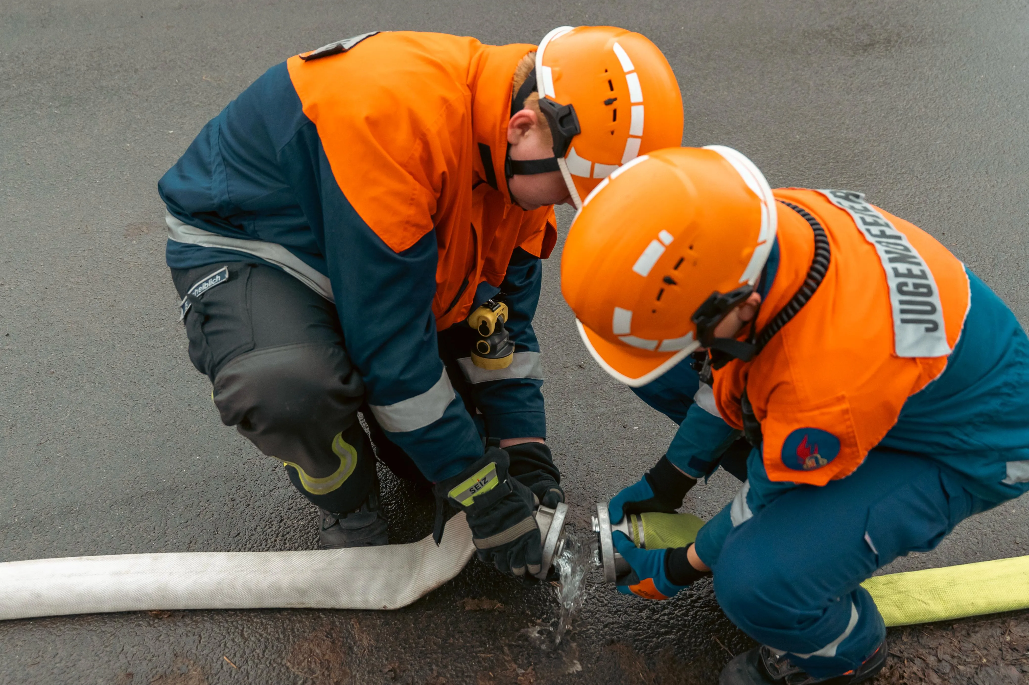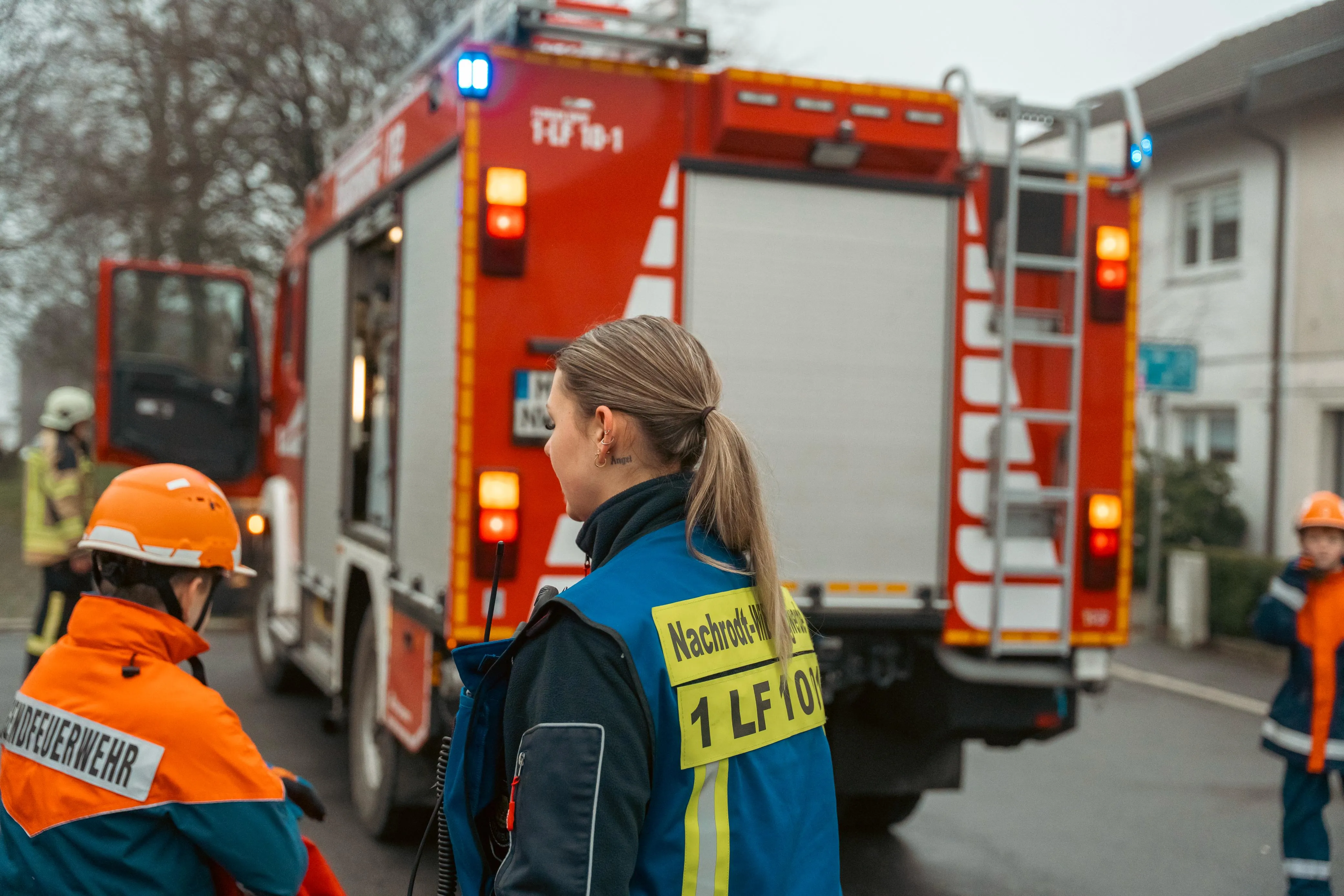 An der Heide brennt ein Papiercontainer. Am Nachmittag geht es weiter nach Nachrodt: Auf dem Gelände des Tiefbauers Homann ist technische Hilfe gefragt. Besonders: Diese beiden Übungen wurden von Mitgliedern der Jugendfeuerwehr selbst vorbereitet. Lea Lüno und Lukas Nowak haben die Szenarien gemeinsam mit ihren Eltern, beide ebenfalls Feuerwehrleute, ausgearbeitet. Verantwortung übernehmen, vorausdenken, Abläufe planen – auch das gehört hier zur Ausbildung.