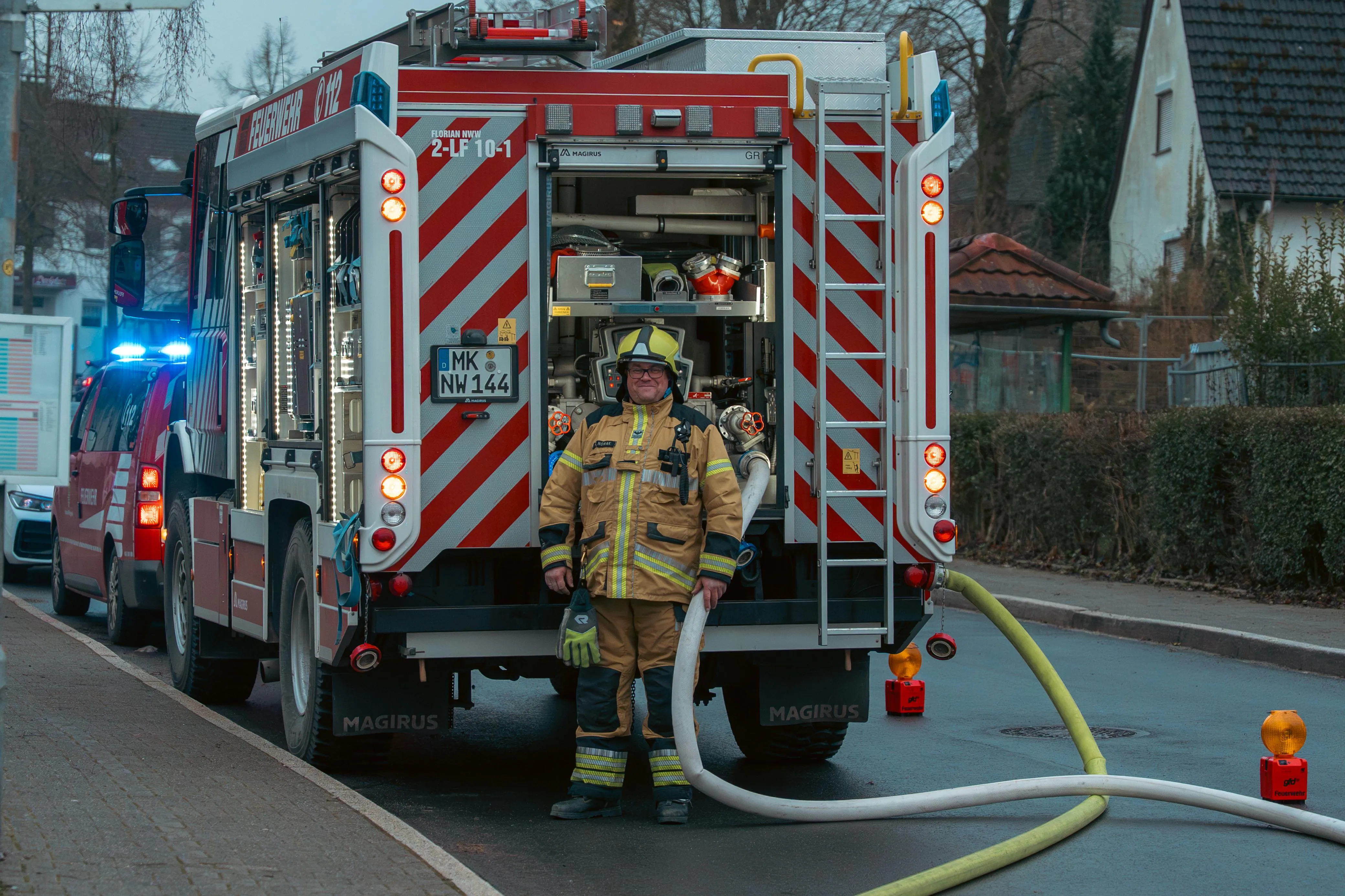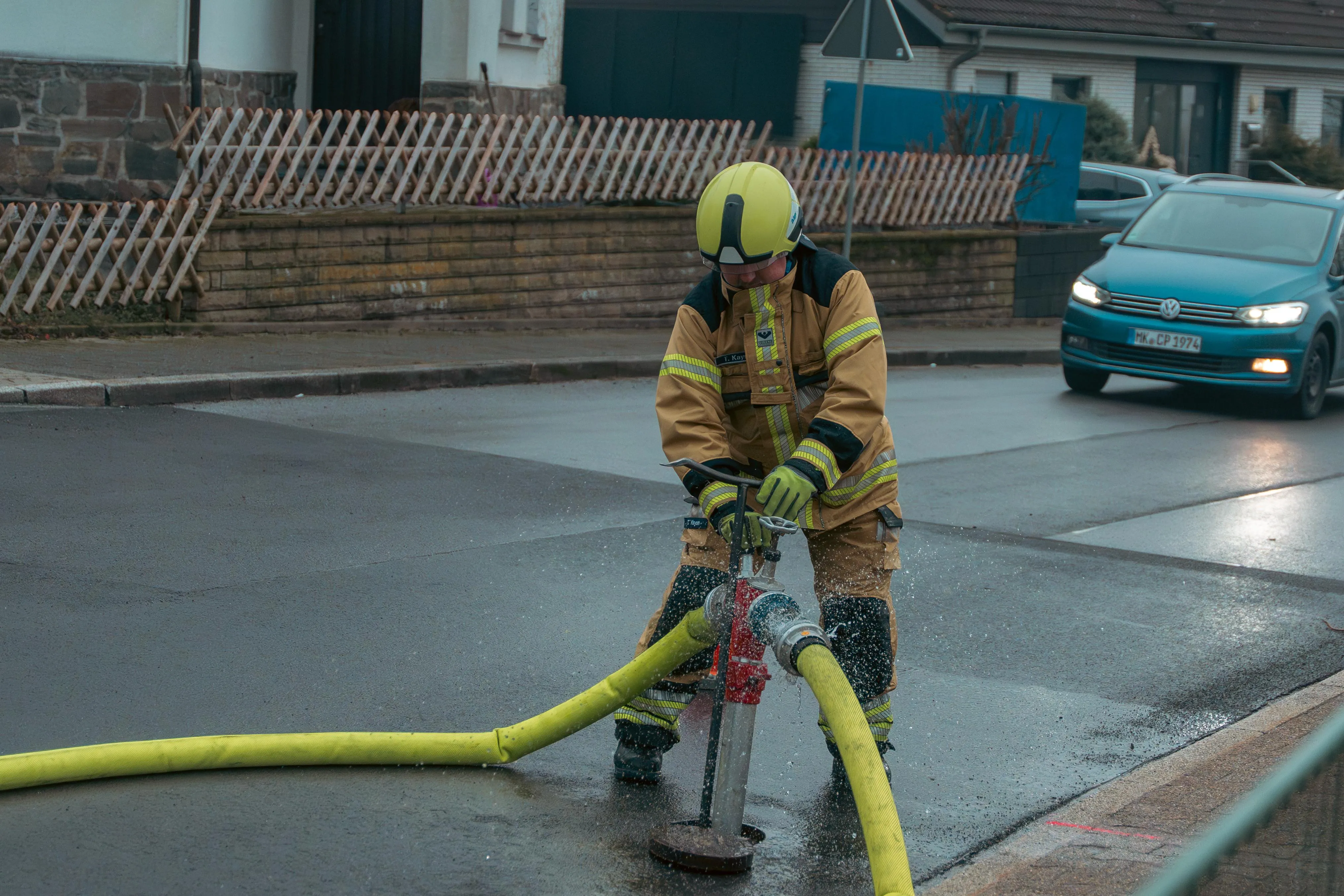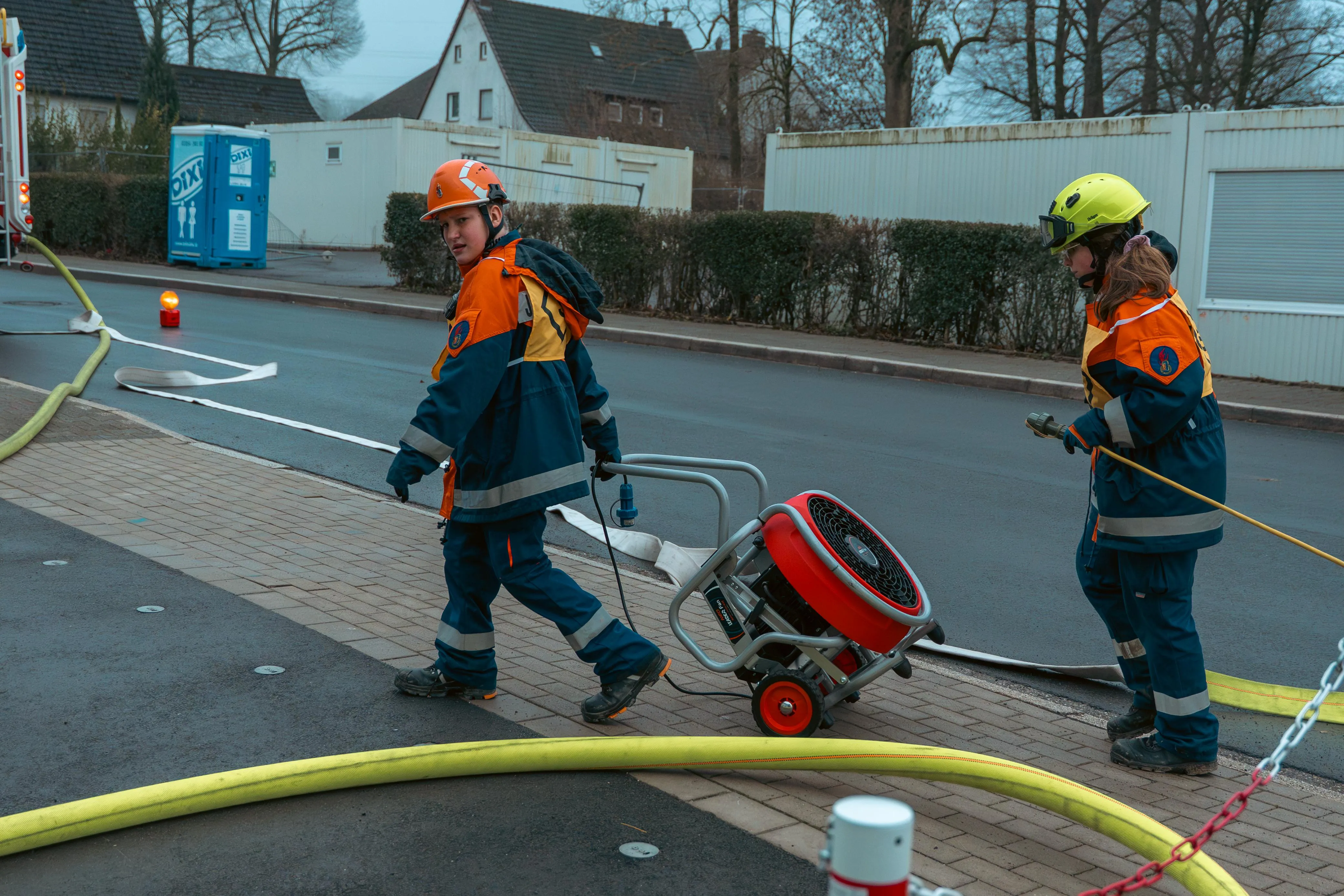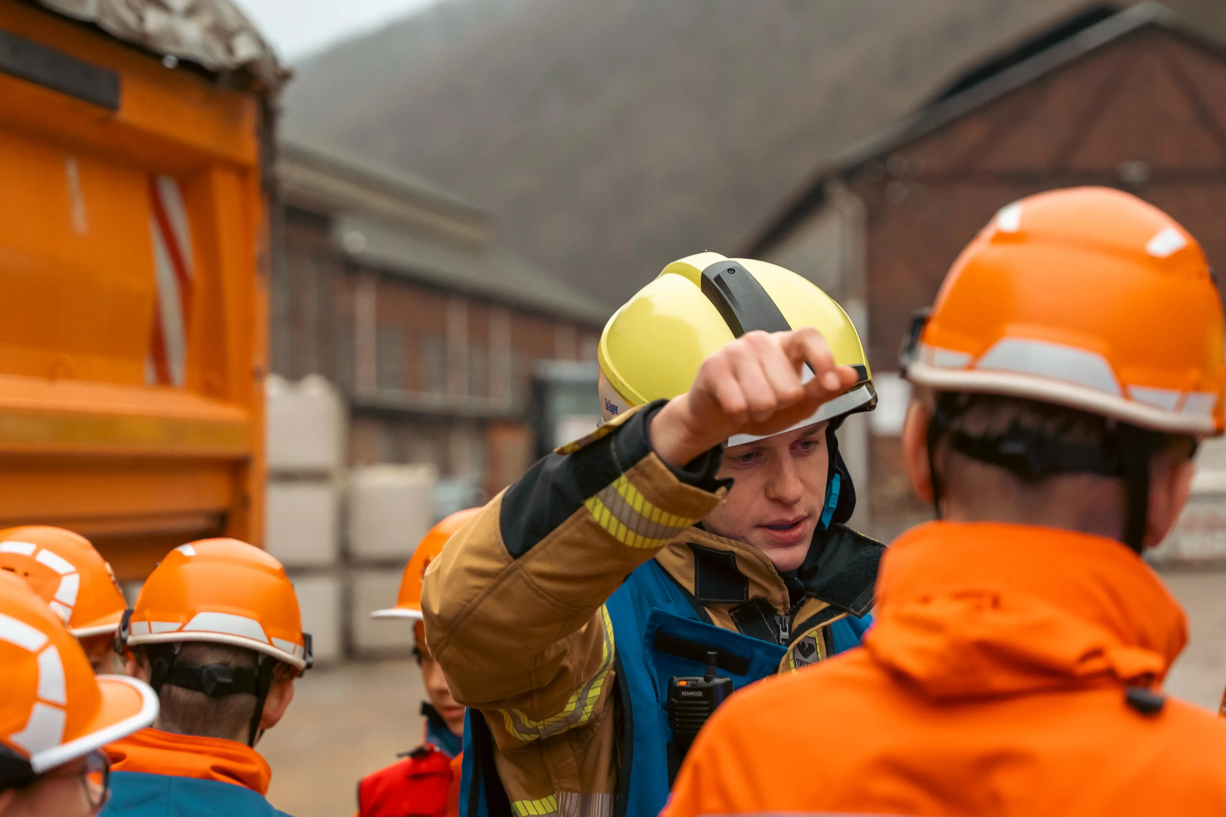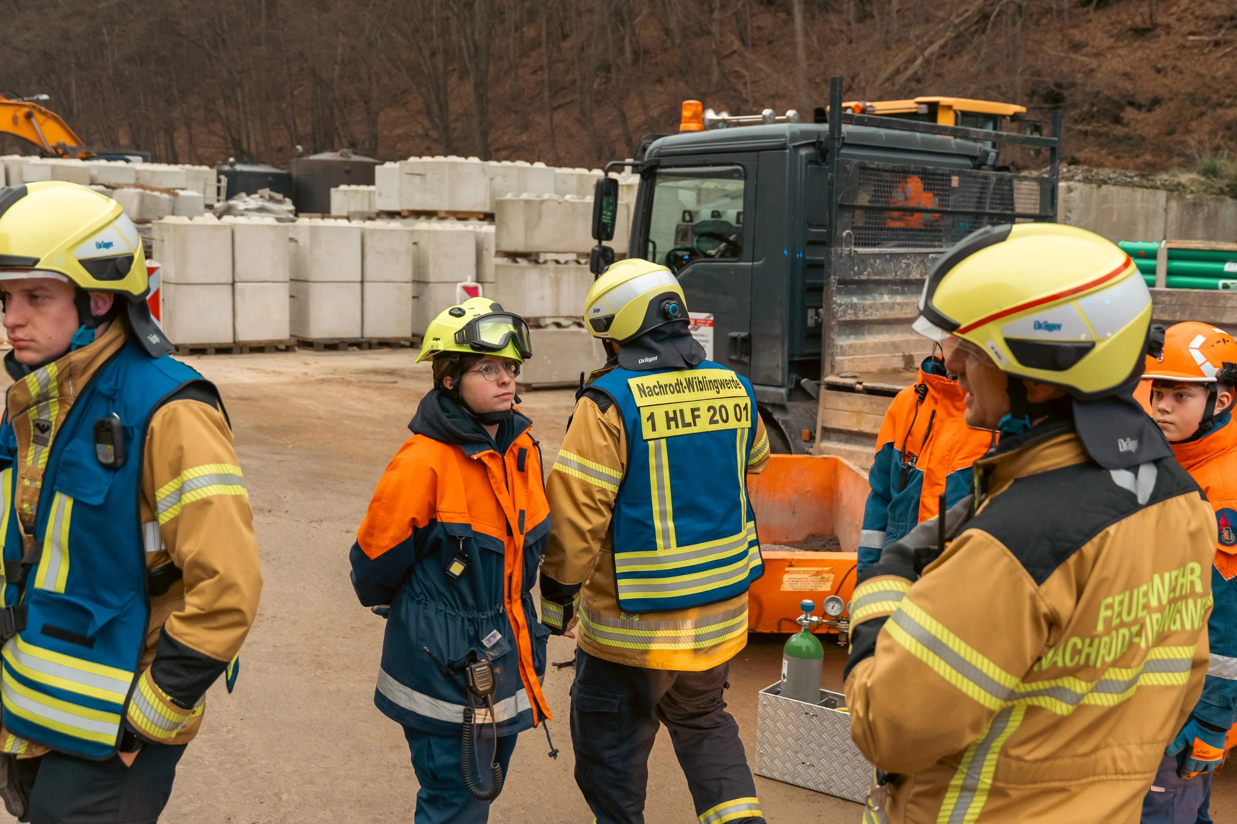 An der Heide brennt ein Papiercontainer. Am Nachmittag geht es weiter nach Nachrodt: Auf dem Gelände des Tiefbauers Homann ist technische Hilfe gefragt. Besonders: Diese beiden Übungen wurden von Mitgliedern der Jugendfeuerwehr selbst vorbereitet. Lea Lüno und Lukas Nowak haben die Szenarien gemeinsam mit ihren Eltern, beide ebenfalls Feuerwehrleute, ausgearbeitet. Verantwortung übernehmen, vorausdenken, Abläufe planen – auch das gehört hier zur Ausbildung.