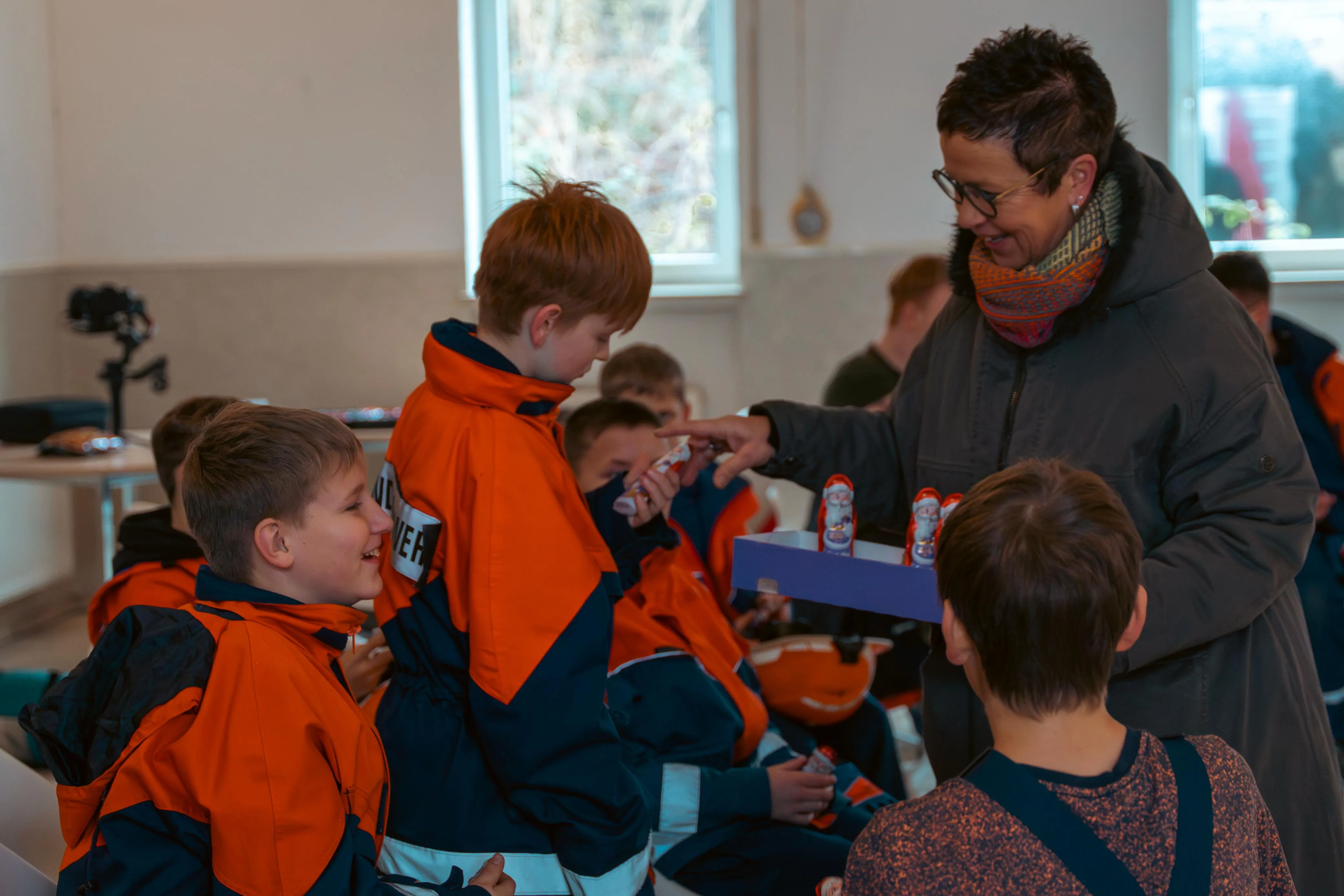Als die Übung beendet ist, sind die Jugendlichen sichtlich erschöpft – und gleichzeitig stolz. Sie haben die komplexen Aufgaben mit Bravour gemeistert. In der Nachbesprechung geht es nur um kleine Feinheiten bei Kommunikation und Ablauf. Auch Bürgermeisterin Birgit Tupat verfolgt das Geschehen aufmerksam. „Wahnsinn, wie professionell die das alles abarbeiten“, lobt sie und verteilt zum Abschluss Schokonikoläuse.