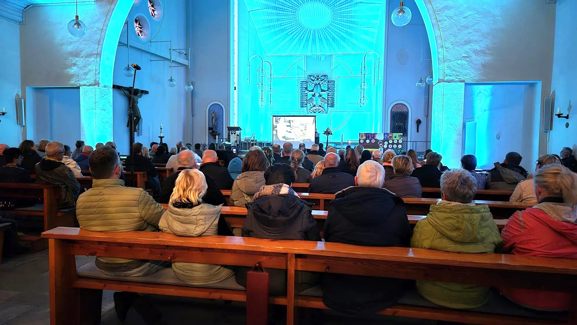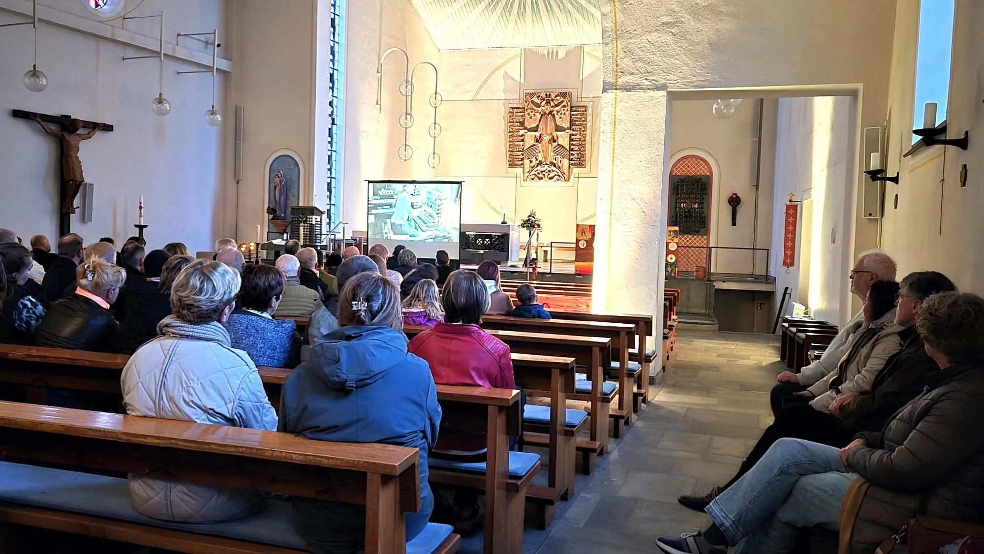 Begleitet wurde das Konzert immer wieder von erklärenden Worten Paroths. Im vorderen Bereich der Kirche war eine Leinwand aufgestellt, auf der die Zuhörer genau verfolgen konnten, was der Organist spielte. Dabei erläuterte er auch, wie einige seiner Eigenkompositionen entstanden und gab Einblicke in die technischen Besonderheiten der Orgel.