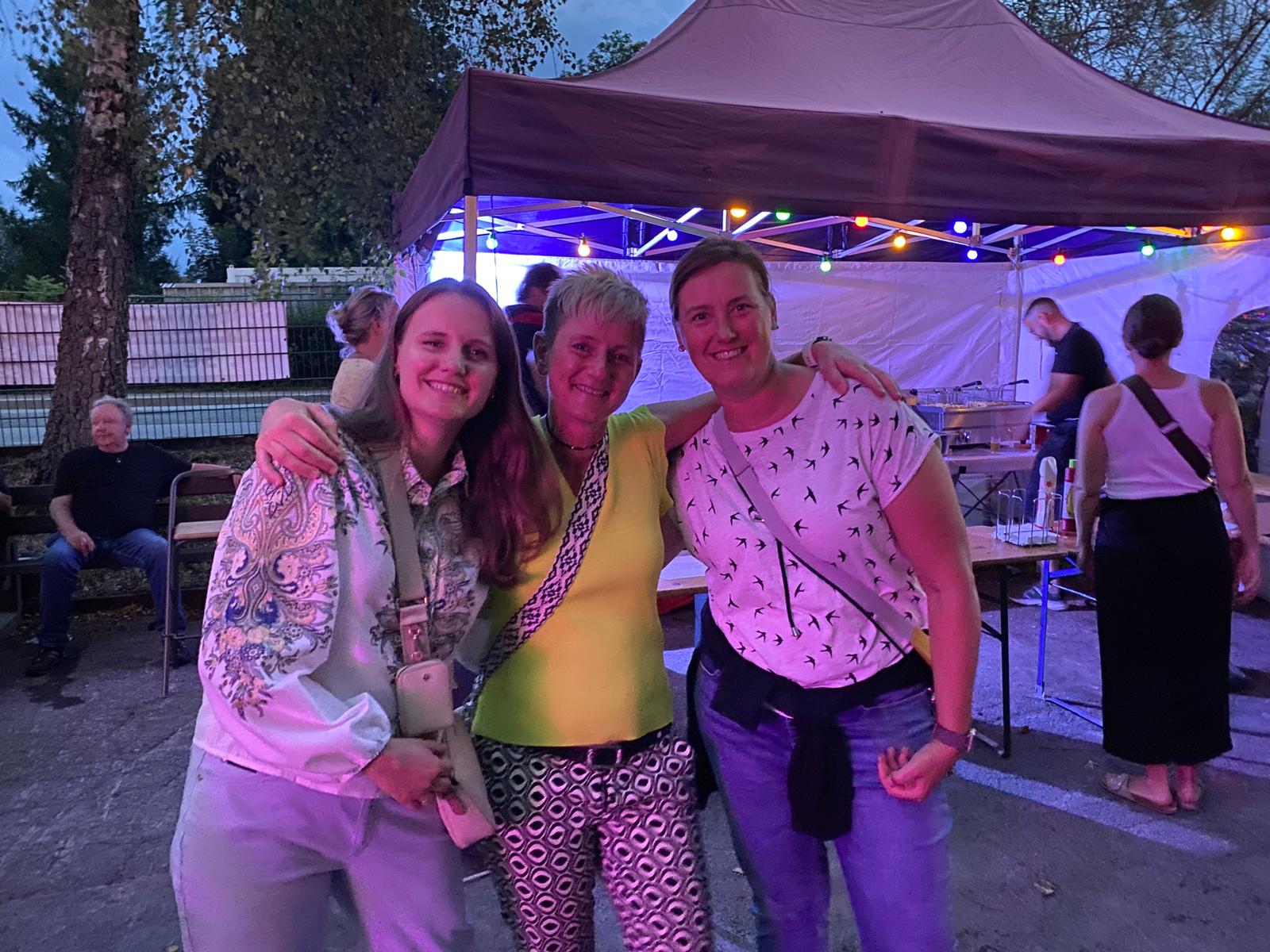 Als der Regen wieder etwas aufhörte, ging es für die Band zurück auf die Bühne. „Die sind schon ein Knaller. Die waren ja auch komplett nass und haben einfach das Konzert fortgesetzt. Super Sache“, erzählte der Organisator. Und auch der Schulhof füllte sich schnell wieder. Die Gäste trauten sich mehr und mehr aus ihren Unterständen und sogar einige, die vor dem Regen nach Hause geflohen waren, kamen wieder zurück. Bis in die Nacht wurde so auf dem Schulhof getanzt und gefeiert.