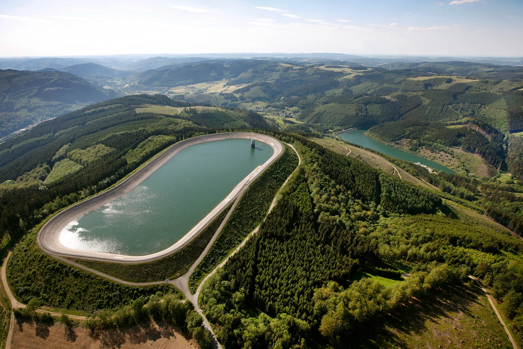 In den 80er Jahren war das der Inbegriff von Luxus und Prosperität: Wer einen Pool auf dem Penthouse besaß, der hatte es geschafft. Dabei waren und sind derlei Bassins doch eher Plantschbecken, bautechnisch bedenkliche Geldvernichtungsanlagen und aus heutiger Sicht ökologisch und energetisch Objekte von zweifelhaftem Ruf. Wir Sauerländer brauchen sowas ohnehin nicht, denn wir punkten mit einem gigantischen Whirlpool auf dem Dach unserer Heimat. Auf dem Dahlberg bei Rönkhausen befindet sich das Oberbecken des Pumpspeicher-Kraftwerks, zu dem ein weiteres Becken 270 Meter tiefer im Glingetal gehört. Das Oberbecken ist auch über 60 Jahre nach dem Baustart immer noch zeitgemäß, ist unter den Vorzeichen der Energie- und Verkehrswende wichtiger denn. Die Anlage ist grüner Stromspeicher, sauberer Energielieferant, bietet ortsnahen sanften Tourismus, ist Sportanlage mitten im Grünen und Bildungseinrichtung für technisch Interessierte. Kurz gesagt: Ein Naherholungsziel, zu dem man hin muss. Oder zu gut neudeutsch: Ein „must have“.