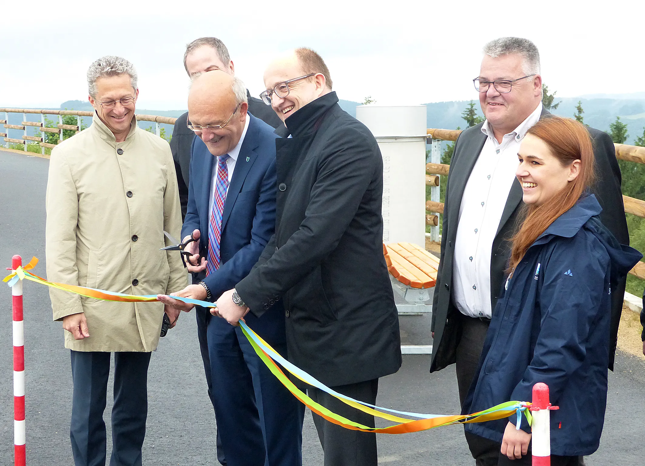 „Wenn ich Besuchern die Gemeinde zeige, dann gehen wir immer hier hinauf“, erklärte seinerzeit der damalige Finnentroper Bürgermeister Dietmar Hess einer besonderen Gästeschar das „Dach des Südsauerlands“: Auf dem Rundweg des Oberbeckens des Pumpspeicher-Kraftwerks Rönkhausen hatten sich zur Neueröffnung des Panoramaweges Vertreter des Tourismus, des Naturparks und der Kraftwerks-Betreiber Mark E und Stadtwerke Aachen eingefunden. Symbolisch wurde das Band zur Einweihung durchschnitten, damit zugleich der Rundweg und ein technisch hochinteressanter „Energiepfad“ für die Bevölkerung freigegeben und obendrein der Grundstein für den Familienspielplatz am Oberbecken gelegt. Das war der Start für eine touristische Attraktion sondergleichen, die zu jeder Jahreszeit ungezählte Besucher anzieht.
