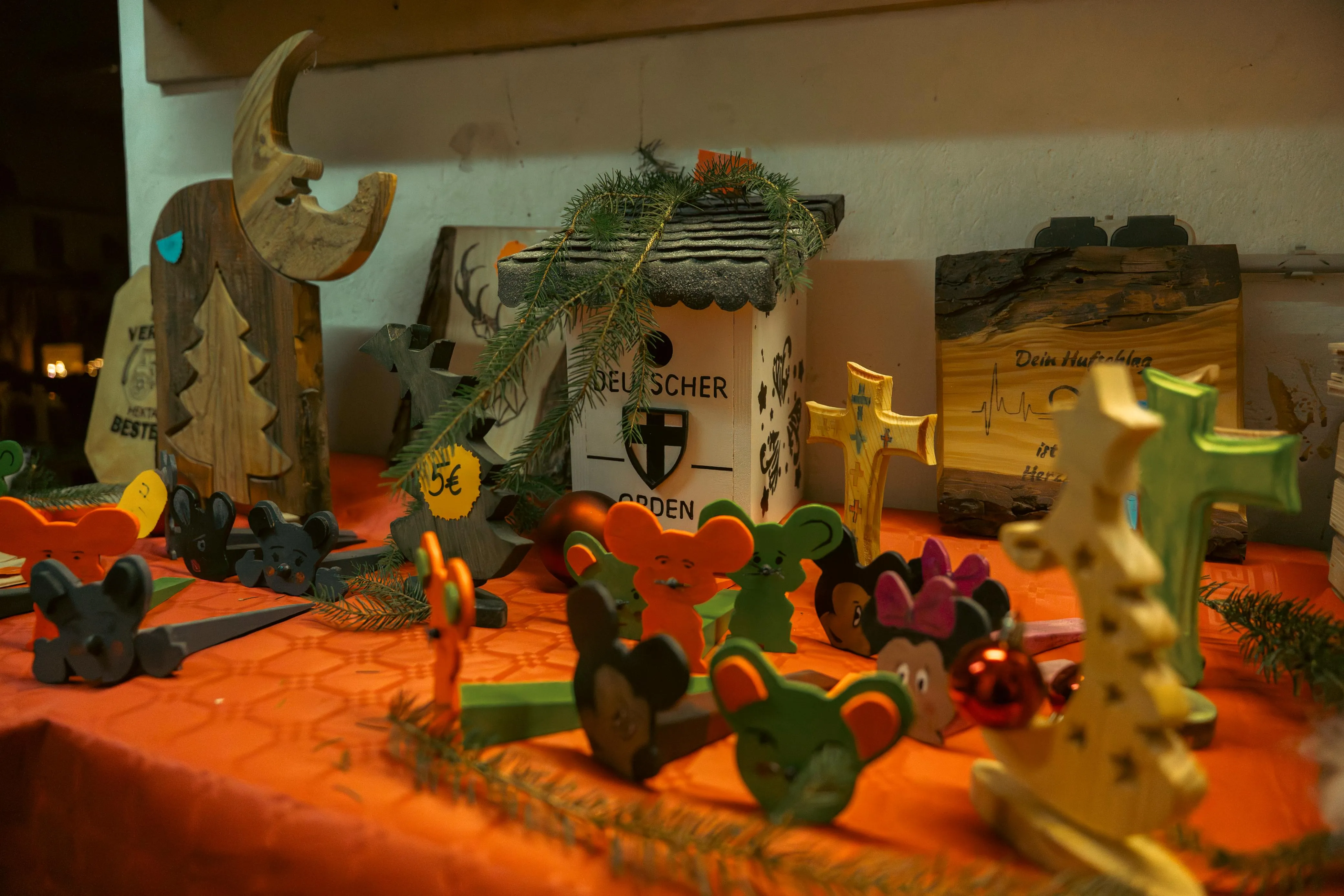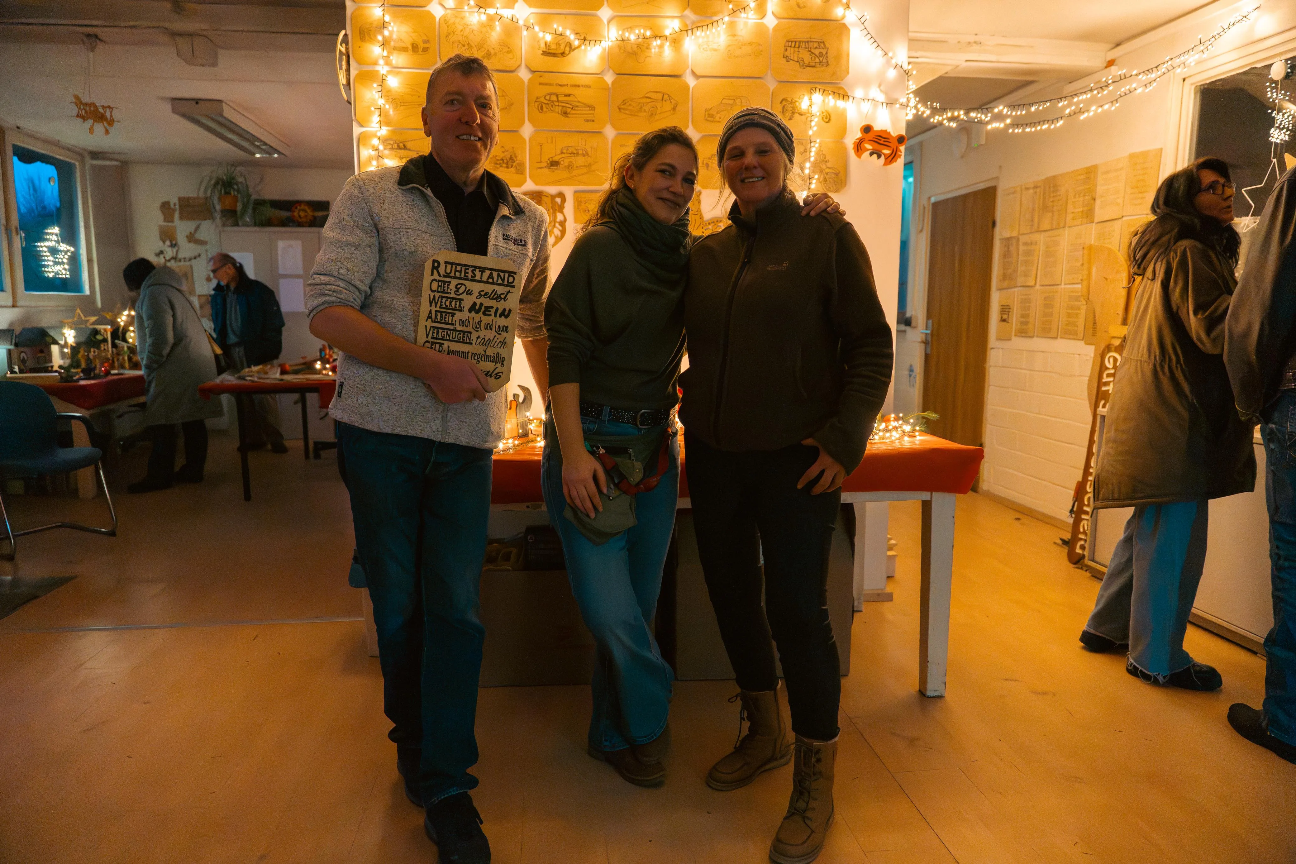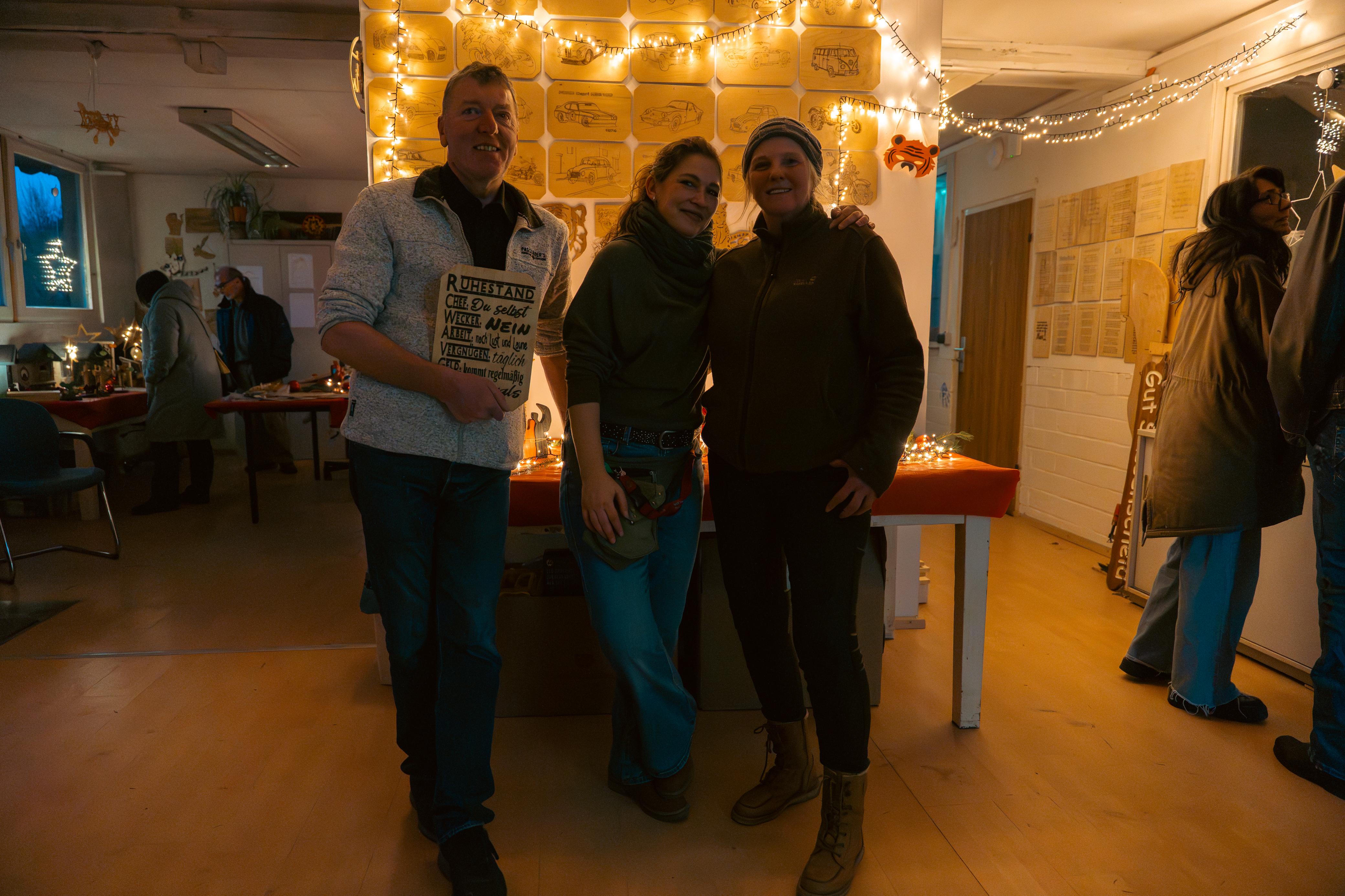 Besonders beliebt waren die Werkstätten: Dort, wo im Alltag Arbeitstherapie stattfindet, lagen nun handgefertigte Produkte zum Verkauf. Entstanden aus der Kreativität und dem Einsatz der Bewohner. Die Idee für den Wintermarkt hatte das Team selbst eingebracht, erzählt Alberto Triches, der gemeinsam mit seiner Kollegin die kleine Holzwerkstatt betreut. „Ich fand schon immer, dass wir hier mal etwas Besonderes für die Bewohner machen müssen“, sagt Triches. Die Entscheidung fiel im November des vergangenen Jahres. Seitdem liefen die Vorbereitungen mit viel Engagement auf allen Seiten. "Hier in der Werkstatt war also ein ganzes Jahr lang Weihnachten", erzählt er.