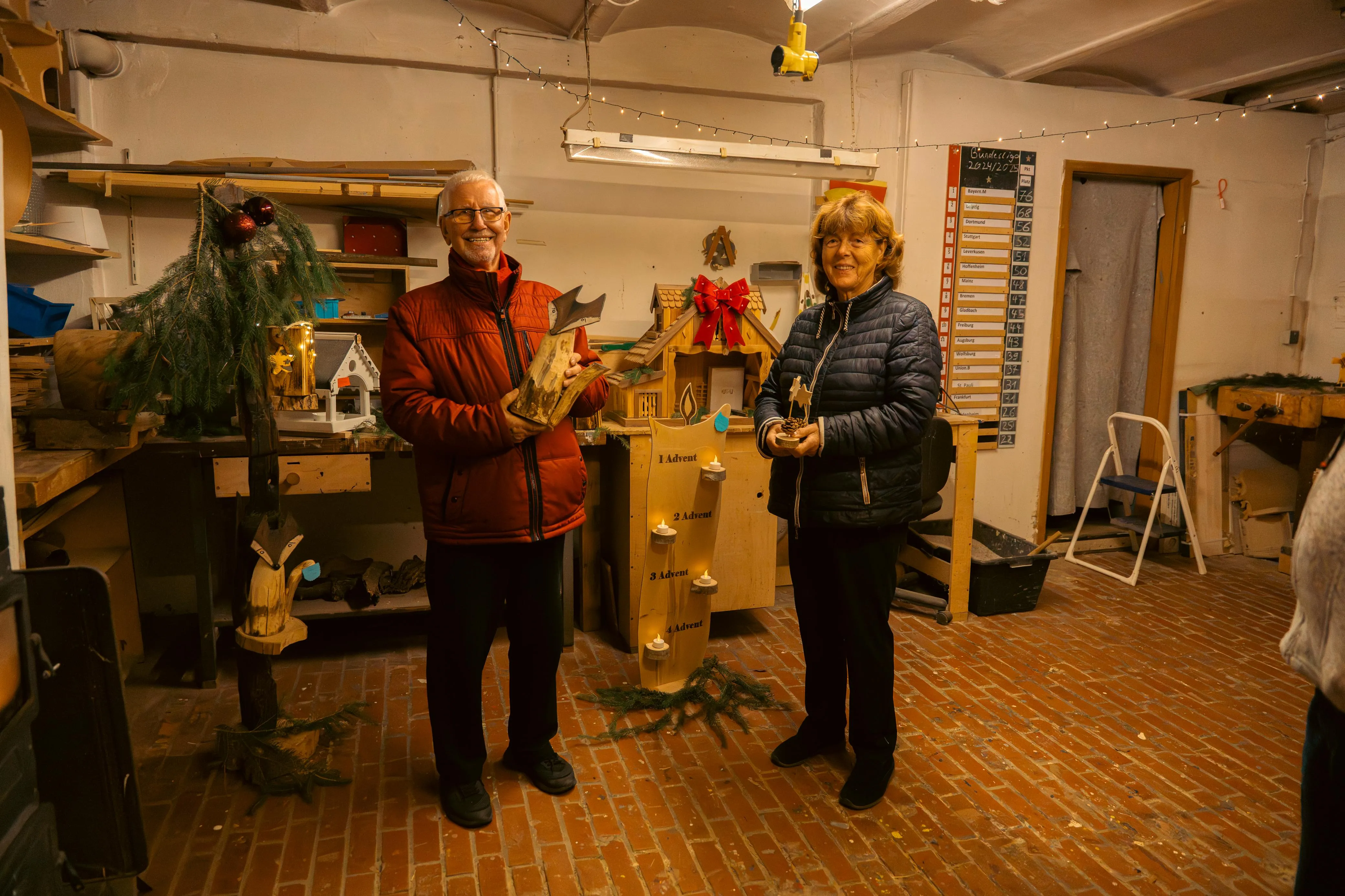 Vier Arbeitstage gibt es pro Woche, wobei der Freitag ganz im Zeichen des Werkstatt-Putzes steht. Am Mittwoch bleibt die Werkstatt geschlossen. Das ist der Tag für Einkäufe. Etwa 15 der rund 25 Bewohner arbeiten in der Werkstatt. Ganz langsam, erzählt Triches, beginnt man mit einfachen Aufgaben: Sperrholz zusägen, Laubsäge bedienen — und tastet sich dann behutsam an die Kunstfertigkeit heran. Für viele ist der Einsatz mit dem Brennpeter beliebt, die Arbeit mit der Dekupiersäge gilt gar als „Königsklasse“. Die Liebe zum Detail ist unübersehbar: filigrane Linien, saubere Kanten, liebevolle Verzierungen. Manche Bewohner seien bei der Arbeit so vertieft, dass sie die Pause vergessen — sie sind mit ganzem Herzen dabei.