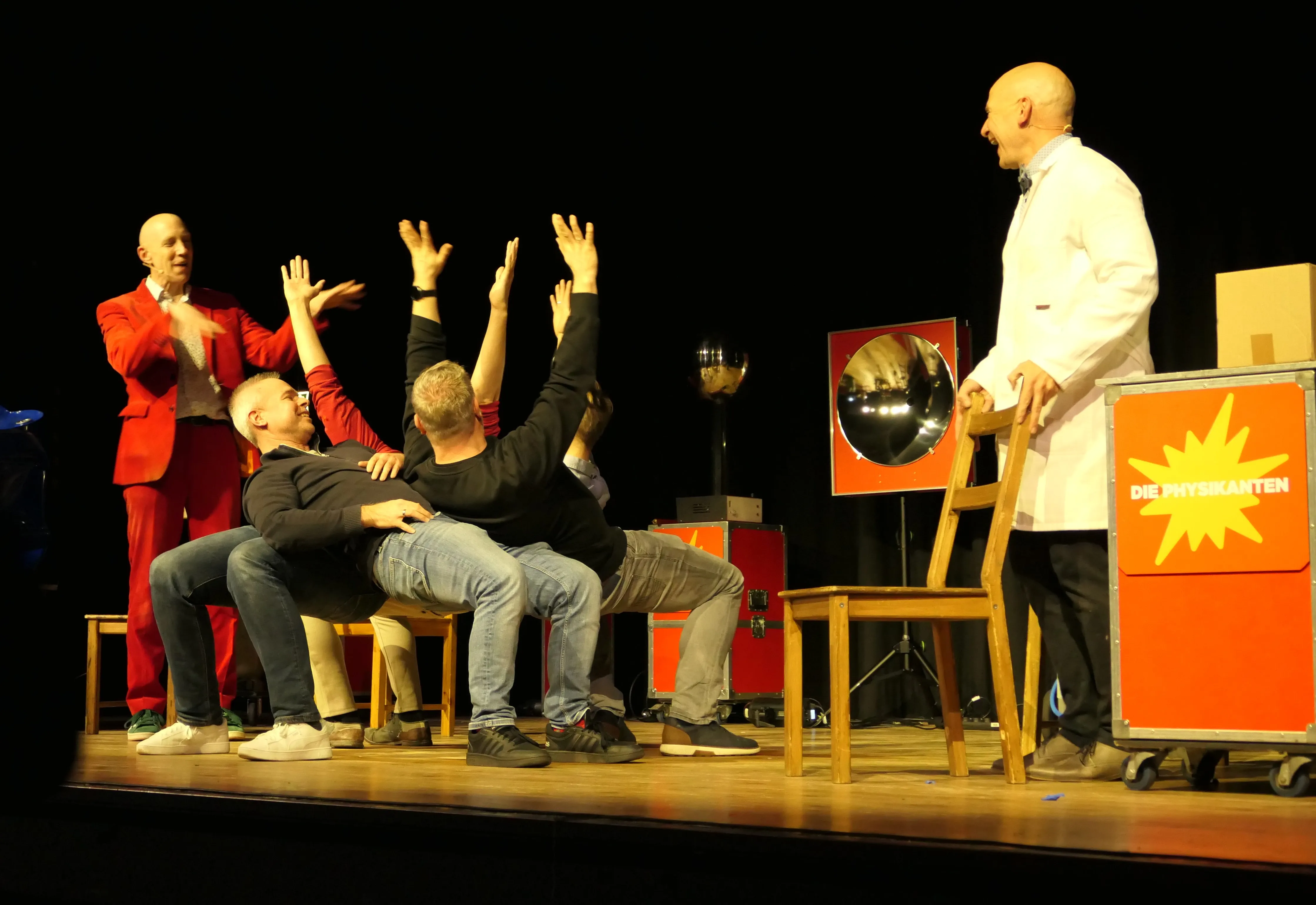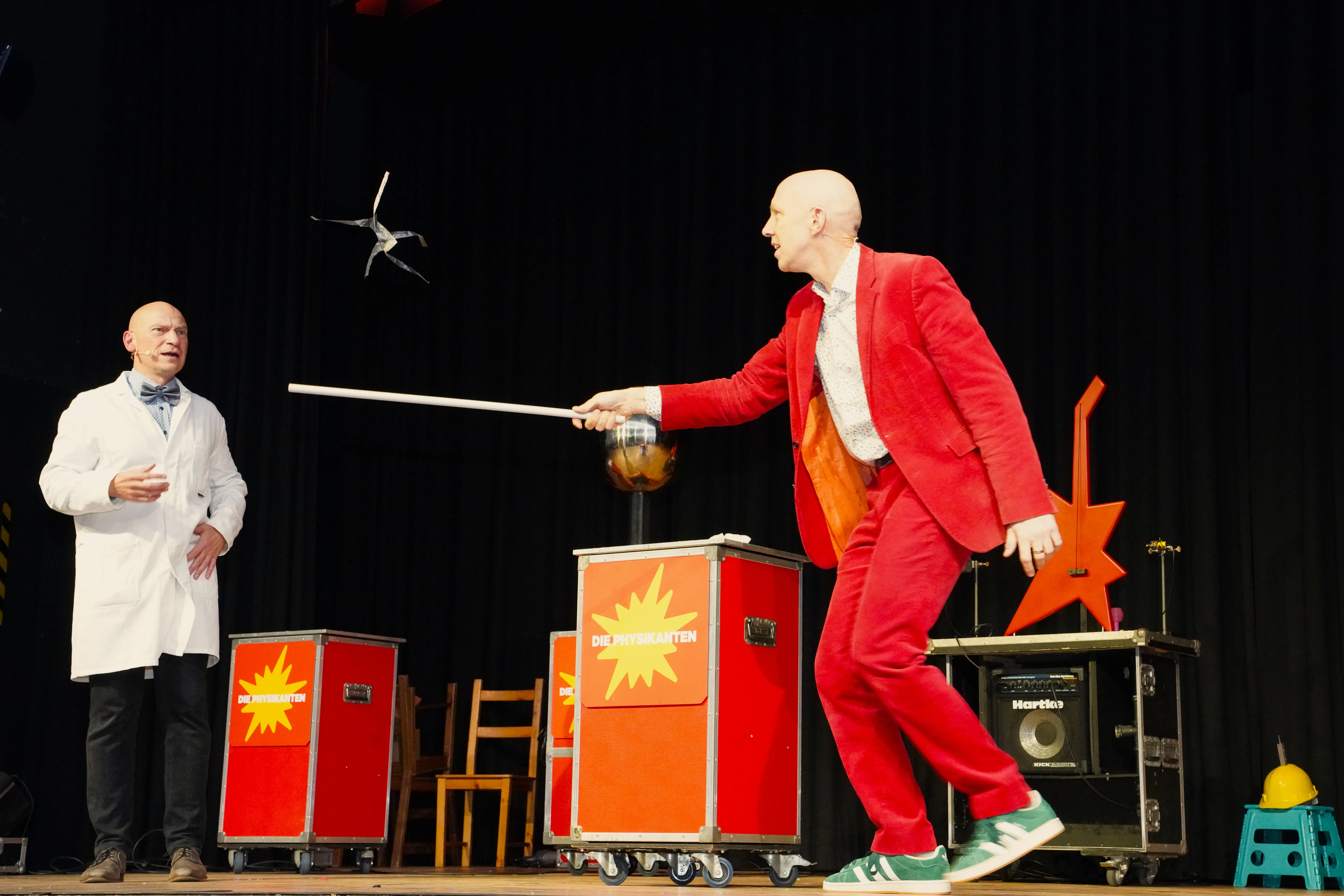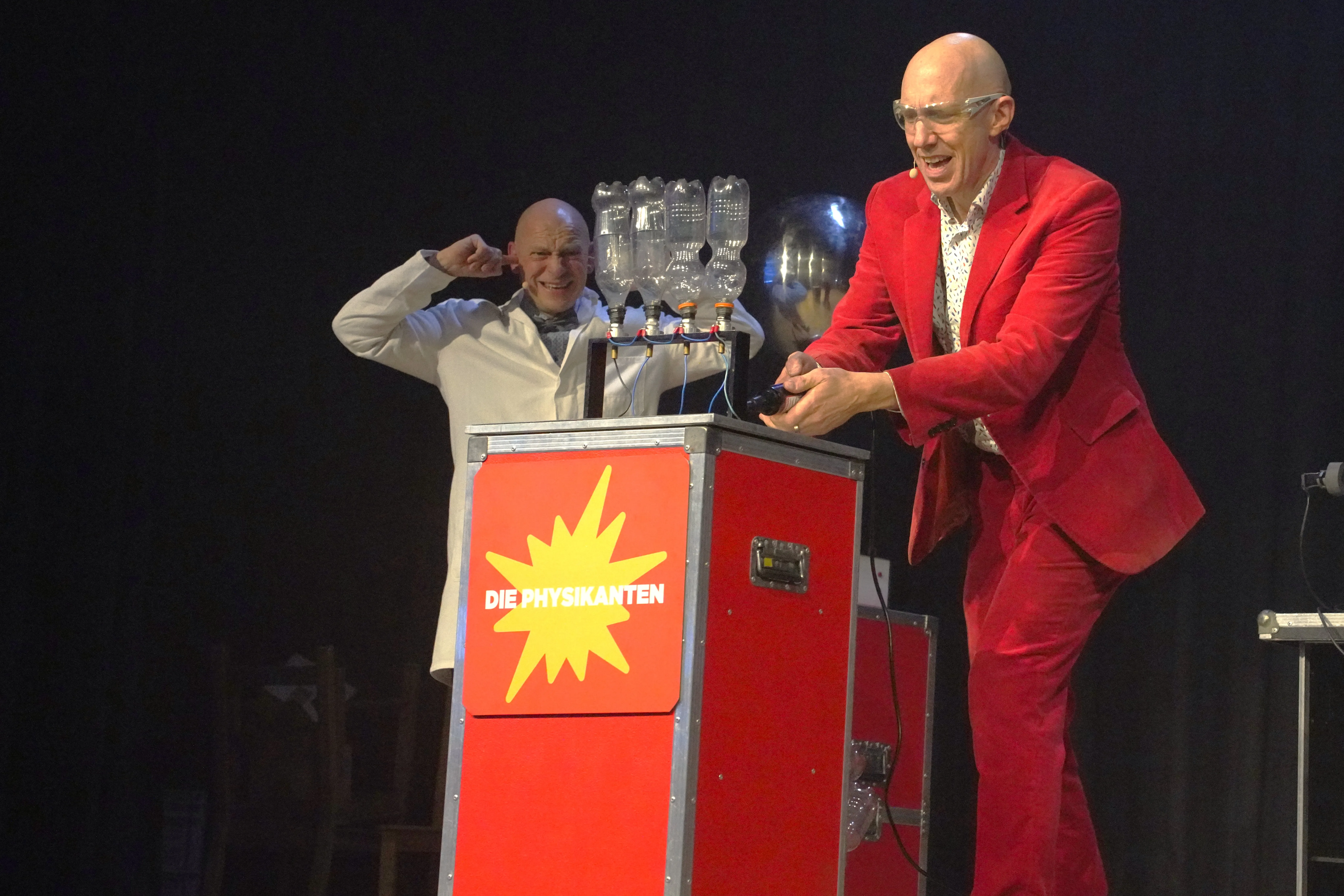 Ein gutes Händchen bewies die Plettenberger KulTour mit dem Finale der diesjährigen Reihe KulTour-Lichter. Nach dem amüsanten Theaterstück „Achtsam Morden“ in der vergangenen Woche stand am Freitag, 12. Dezember, das letzte Ereignis der Veranstaltungsreihe an. Es handelte sich um die Wissenschaftsshow „Die Physikanten“.
