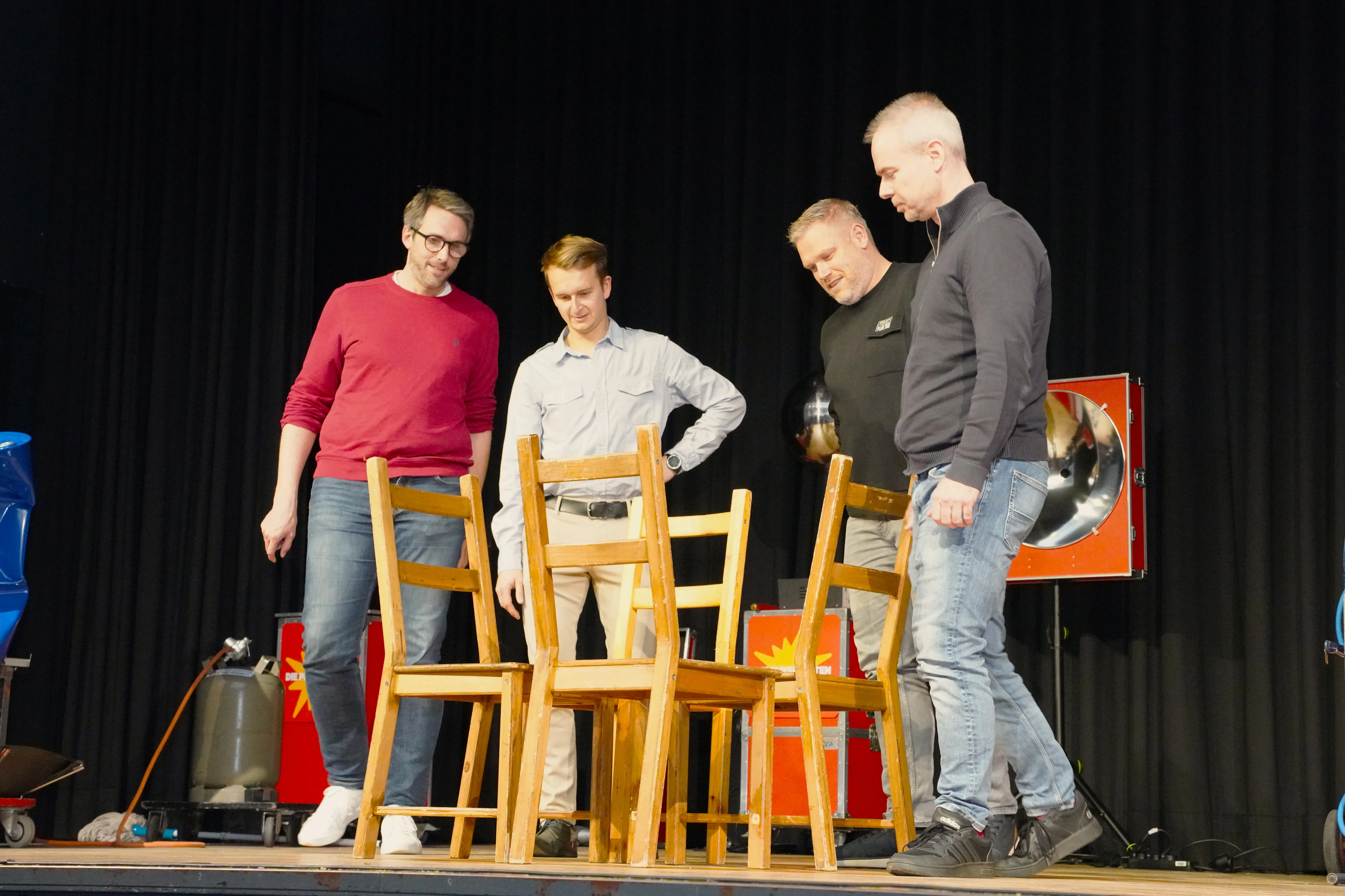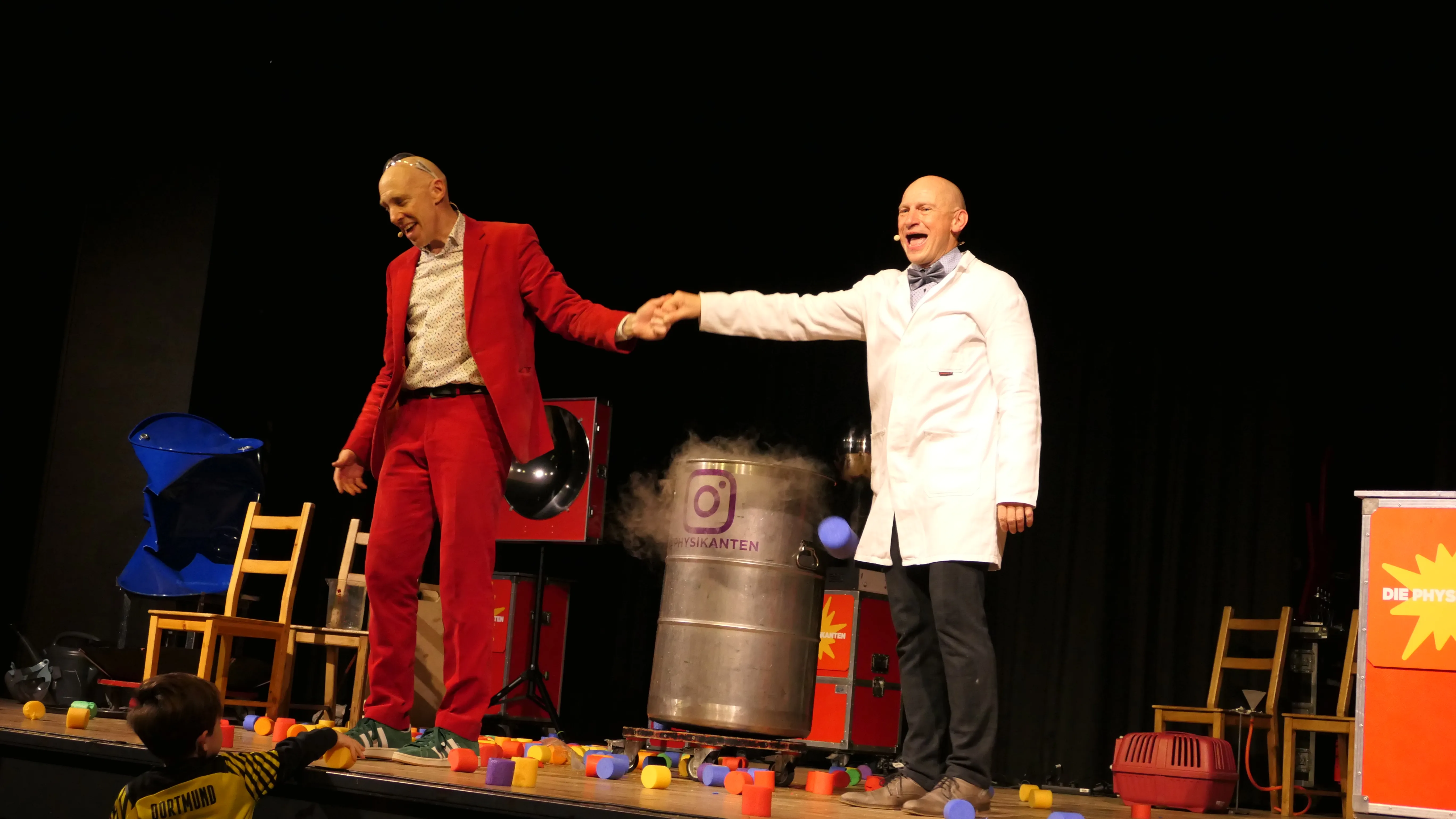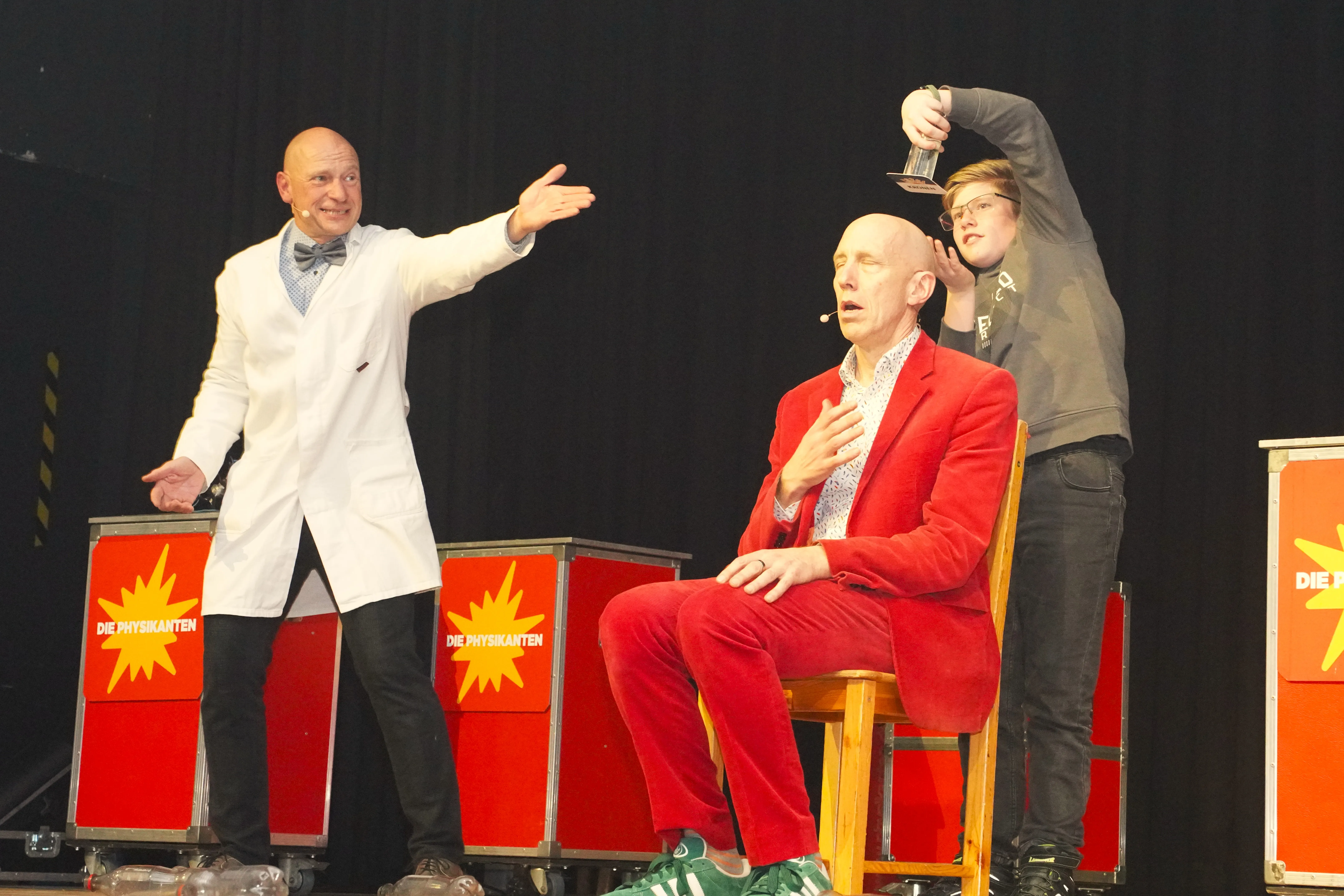 Ein gutes Händchen bewies die Plettenberger KulTour mit dem Finale der diesjährigen Reihe KulTour-Lichter. Nach dem amüsanten Theaterstück „Achtsam Morden“ in der vergangenen Woche stand am Freitag, 12. Dezember, das letzte Ereignis der Veranstaltungsreihe an. Es handelte sich um die Wissenschaftsshow „Die Physikanten“.
