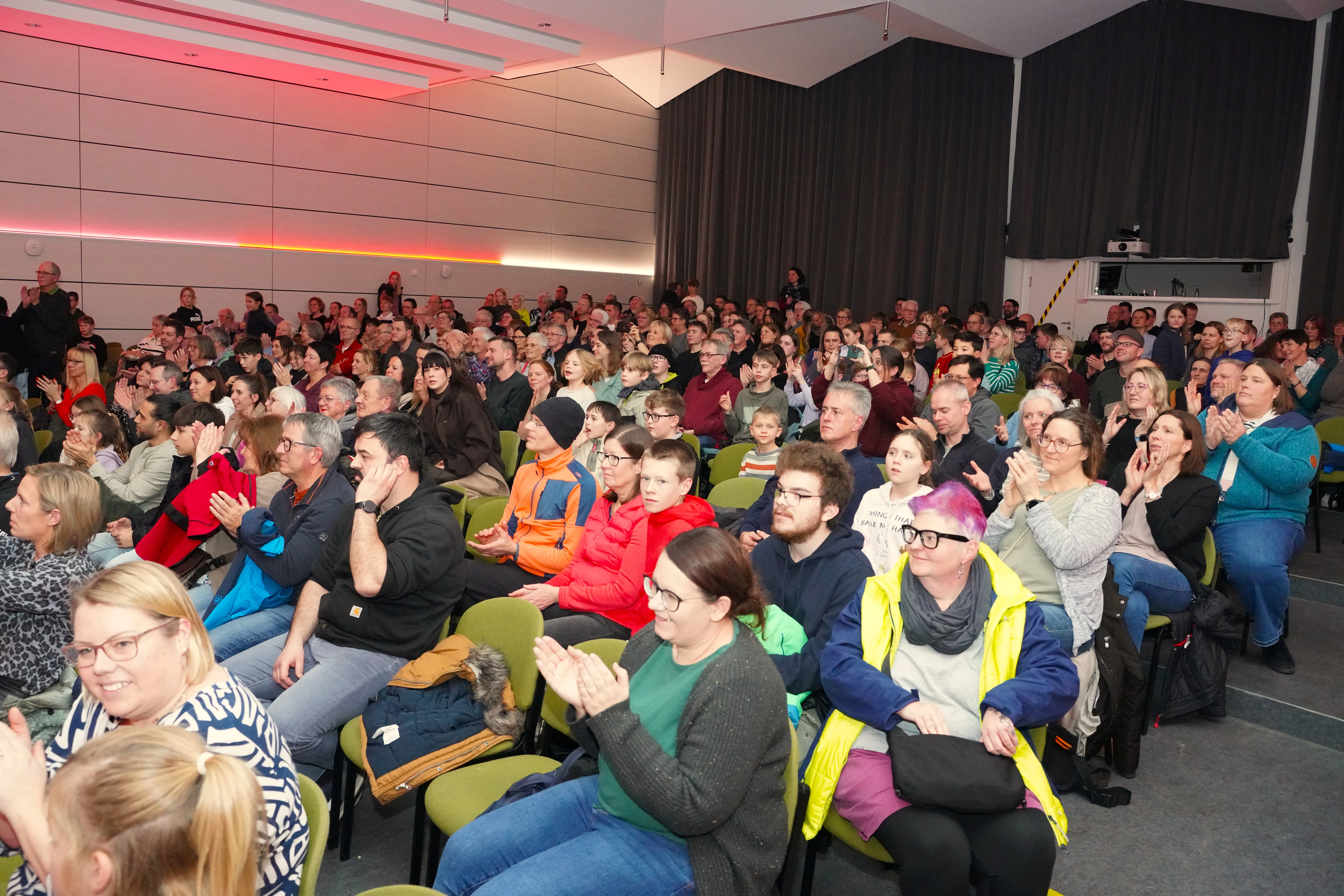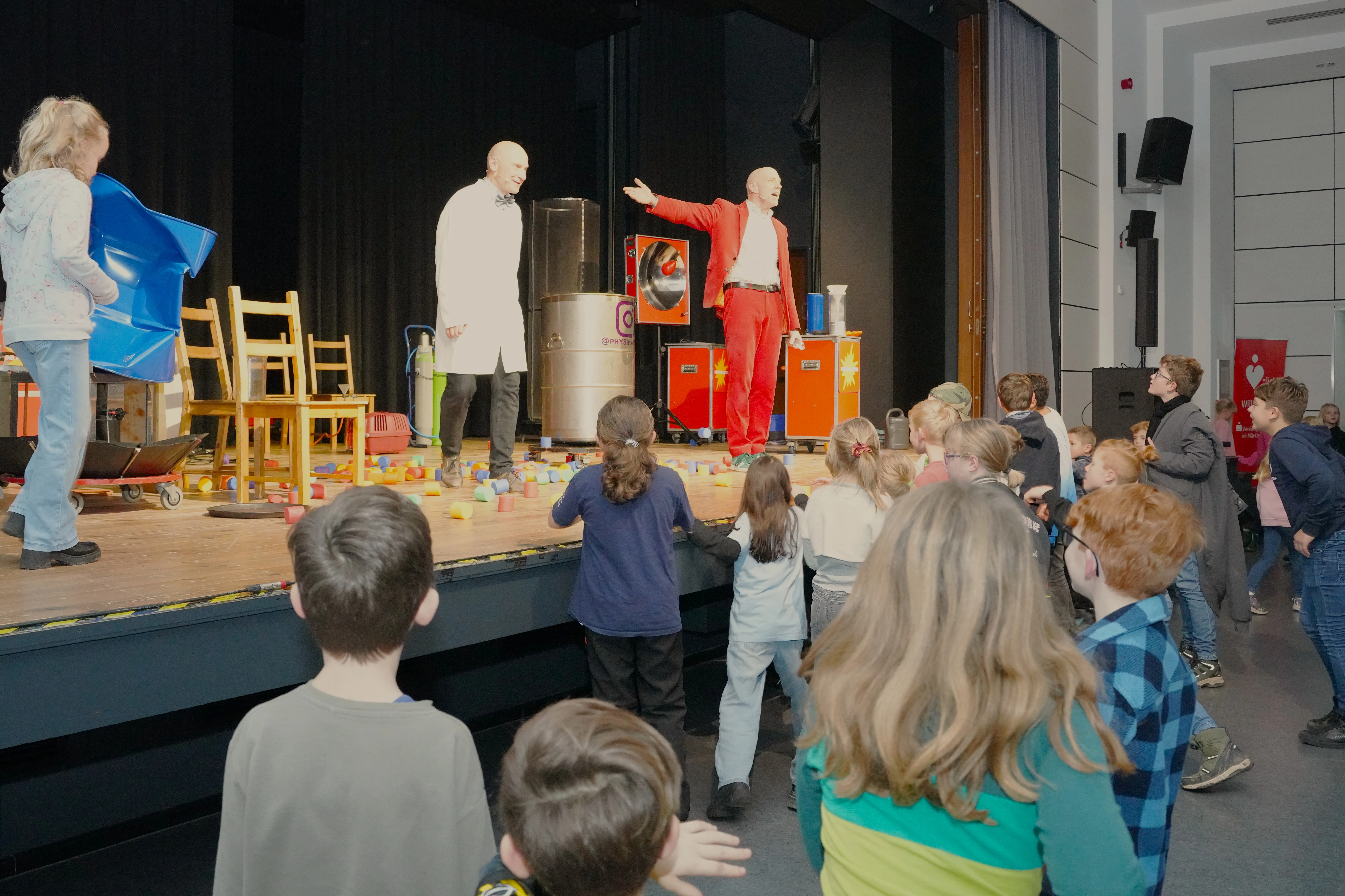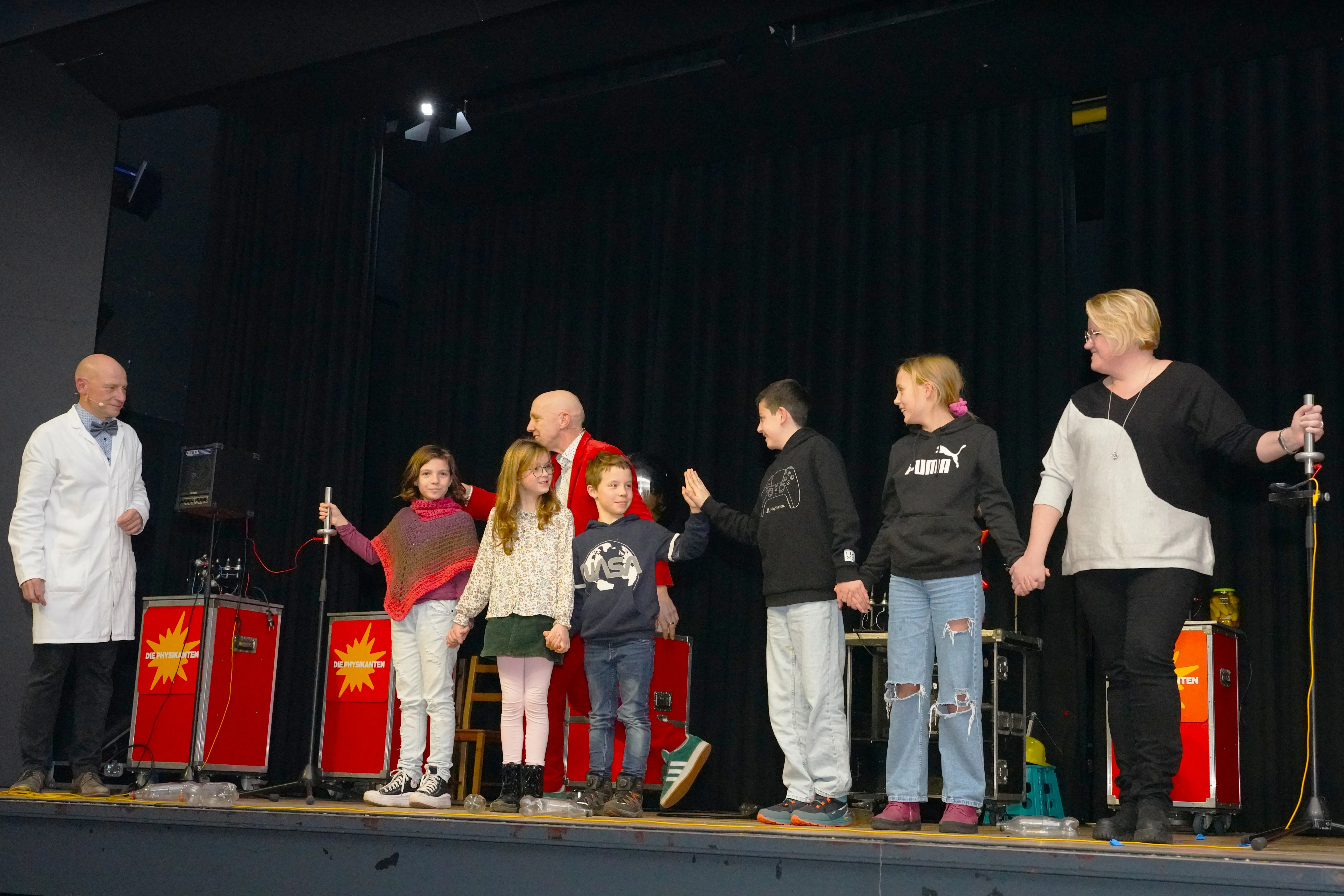 Nach zwei Aufführungen am Vormittag für Schülerinnen und Schüler der Geschwister-Scholl-Realschule und des Albert-Schweitzer-Gymnasiums waren am frühen Abend etwa 300 Gäste in die Aula des Schulzentrums in Böddinghausen geströmt. Viele Kinder und Jugendliche wurden von Eltern oder Großeltern begleitet. Und sie genossen, so viel vorab, einen wundervollen, unterhaltsamen, lehrreichen und actionreichen Abend.