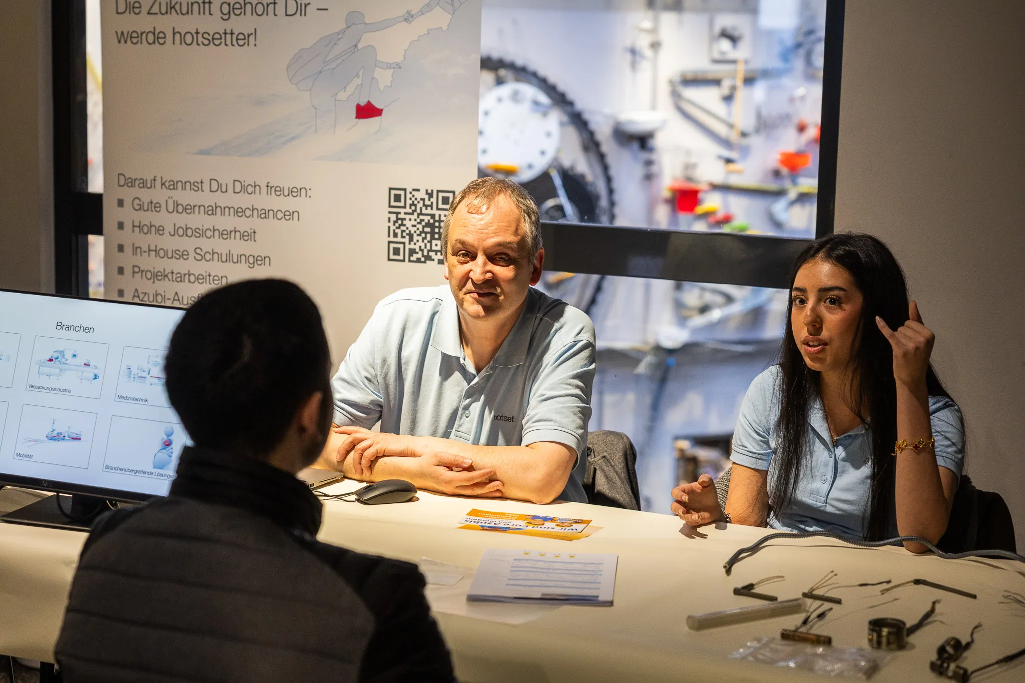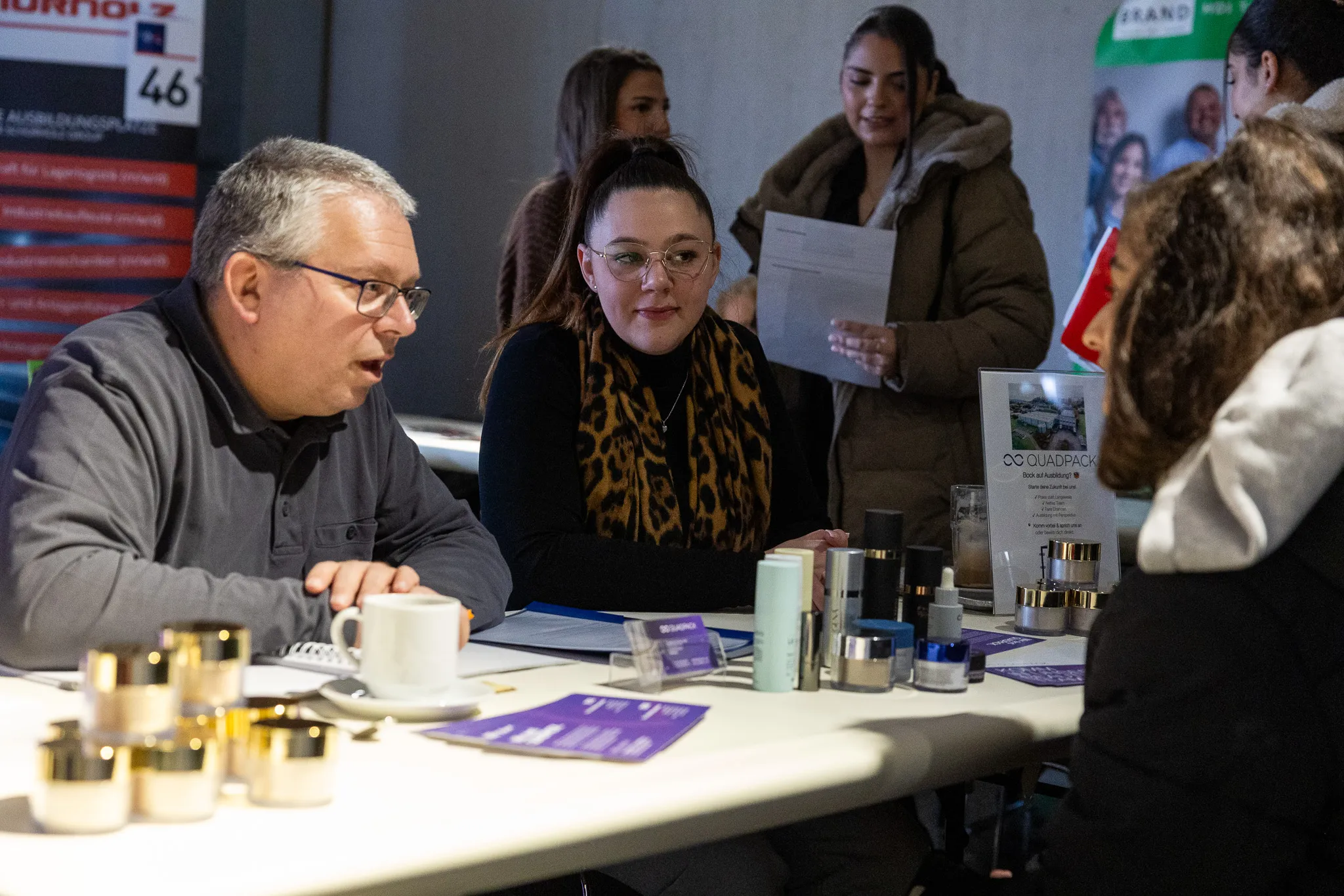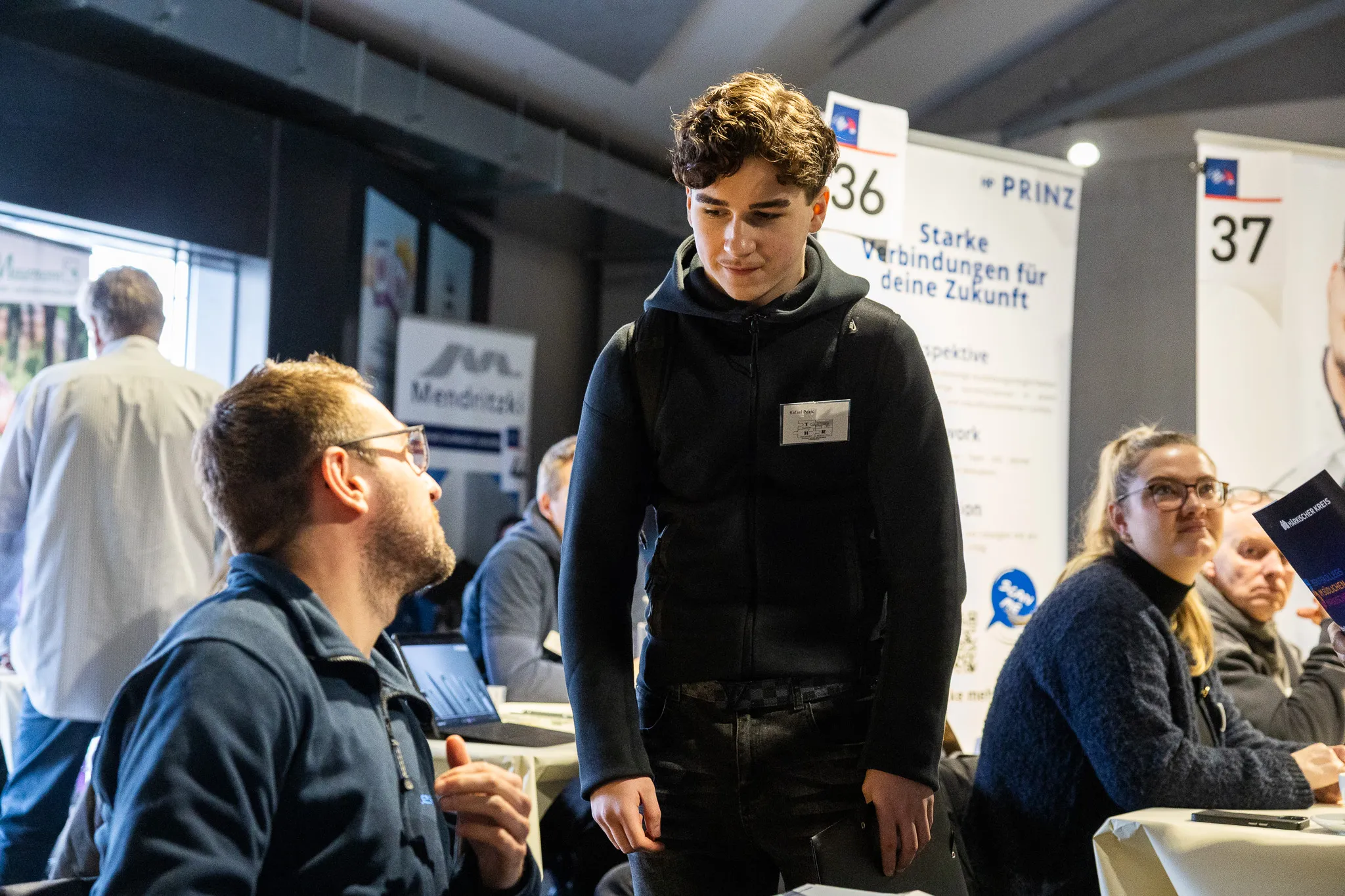 In kurzen Gesprächen hatten Jugendliche und Unternehmen die Möglichkeit, sich direkt kennenzulernen. So konnten die Interessenten einen ersten persönlichen Eindruck hinterlassen und potenzielle Arbeitgeber von sich überzeugen. „Im besten Fall können direkt Termine für ein Vorstellungsgespräch vereinbart werden“, erklärte Kristina Junge vom Arbeitgeberverband. Dazu standen die Berufs- und Studienberatung der Arbeitsagentur sowie die Kammern bereit, die auf Wunsch Bewerbungsunterlagen kontrollierten und hilfreiche Tipps für die Gespräche gaben.
