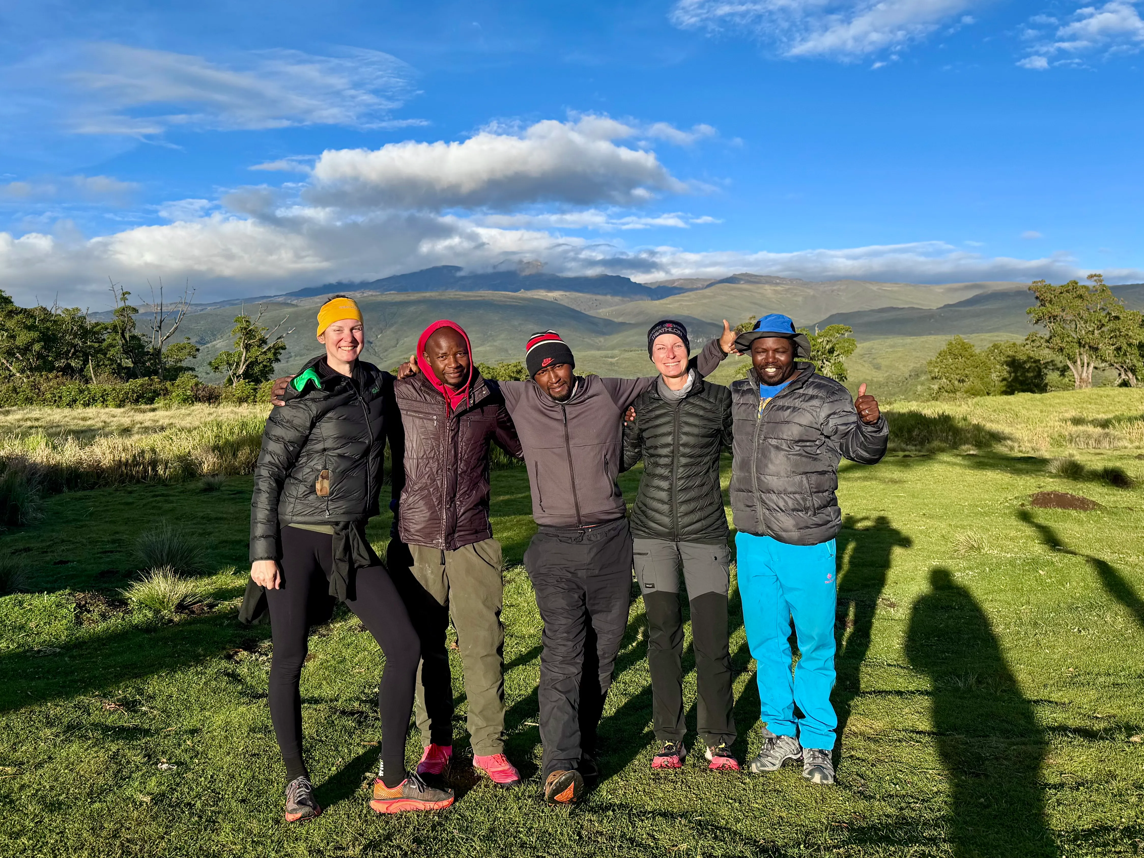 Nach 15 Tagen hatten Nadja Kuhn und Verena Walter 1.050 Kilometer und 12.500 Höhenmeter mit dem Bike zurückgelegt. Die nächste Herausforderung folgte auf dem Fuß: Sie hatten sich die Besteigung des Lenana Peak im Mount-Kenya-Massiv vorgenommen. Die fünftägige Treckingtour brachte sie erneut an die eigenen Grenzen. Kälte, Regen und die Höhe - es ging von 3.000 bis hinauf auf 4.985 Meter - verlangten dem Körper einiges ab. „Das war Ausnahmezustand. Wir haben extra Medikamente gegen die Höhenkrankheit genommen“, so Nadja Kuhn. Der Sonnenaufgang oben auf dem Lenana Peak entschädigte jedoch für die Strapazen. „Das war spektakulär!“, schwärmt Nadja Kuhn. „Ein Erlebnis für die Ewigkeit!“