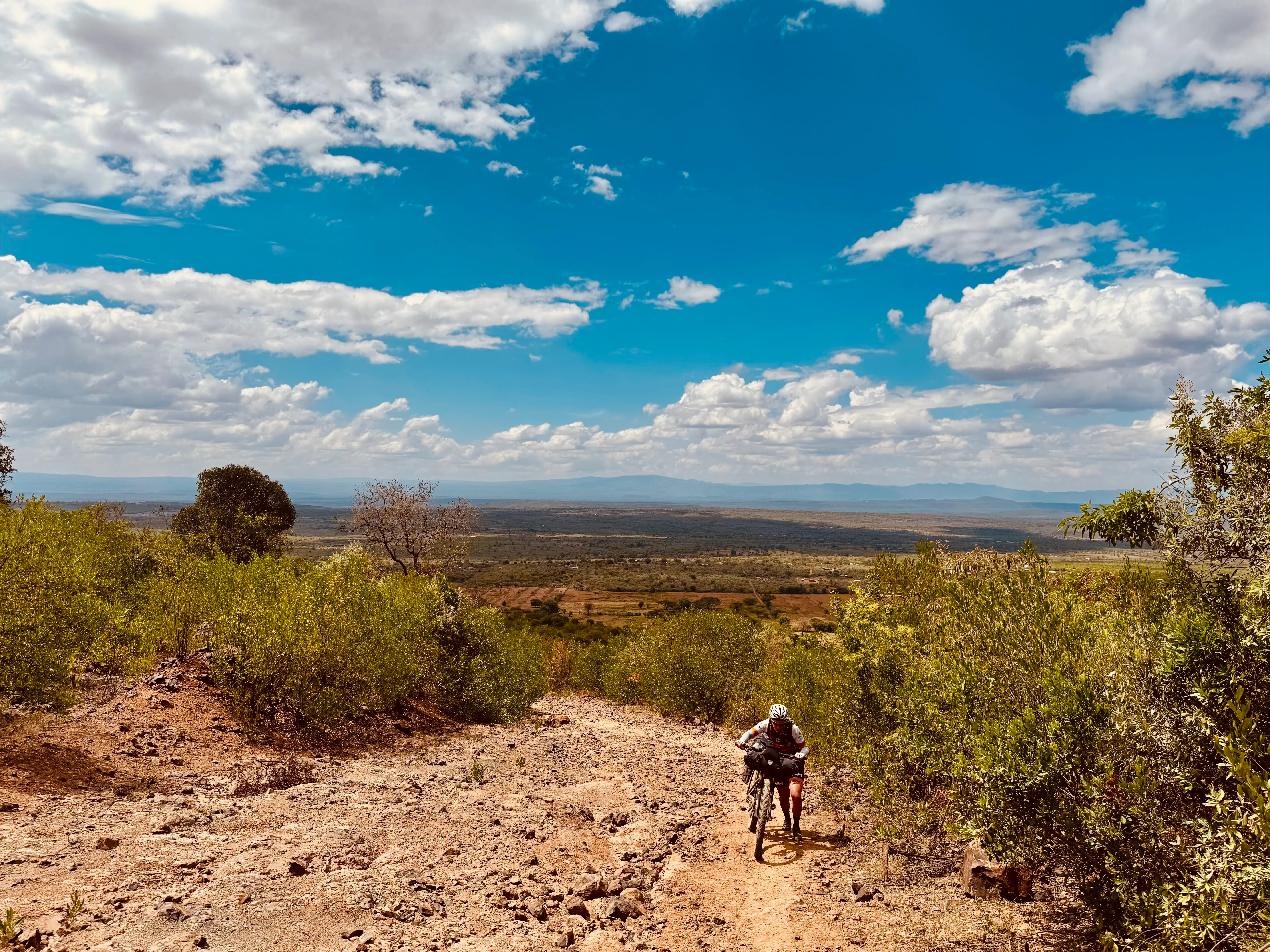 Die Kenya Bike Odyssee führt von der Hauptstadt Nairobi über gut 1.000 Kilometer bis Nanyuki. 1.000 Kilometer unbefestigte Straßen und Singletrails, hohe Berge, grüne Wälder, malerische Seen, zerklüftete, windgepeitschte Ebenen, roter Sand und riesige Flächen wilder Savanne. „Es gab unendlich viele landschaftlich beeindruckende Kilometer“, erzählt Nadja Kuhn im Gespräch mit LokalDirekt. Sie stellte aber auch schnell fest: „Die Route war sehr viel anspruchsvoller als erwartet und brachte mich schon mal an die Grenze.“ Aber genau dafür sei sie nach Afrika gereist. Sie genoss auch die mentale Herausforderung, sich ins in allen Belangen Unbekannte zu stürzen. „Wir waren 15 Tage lang immer irgendwo im Nirgendwo.“