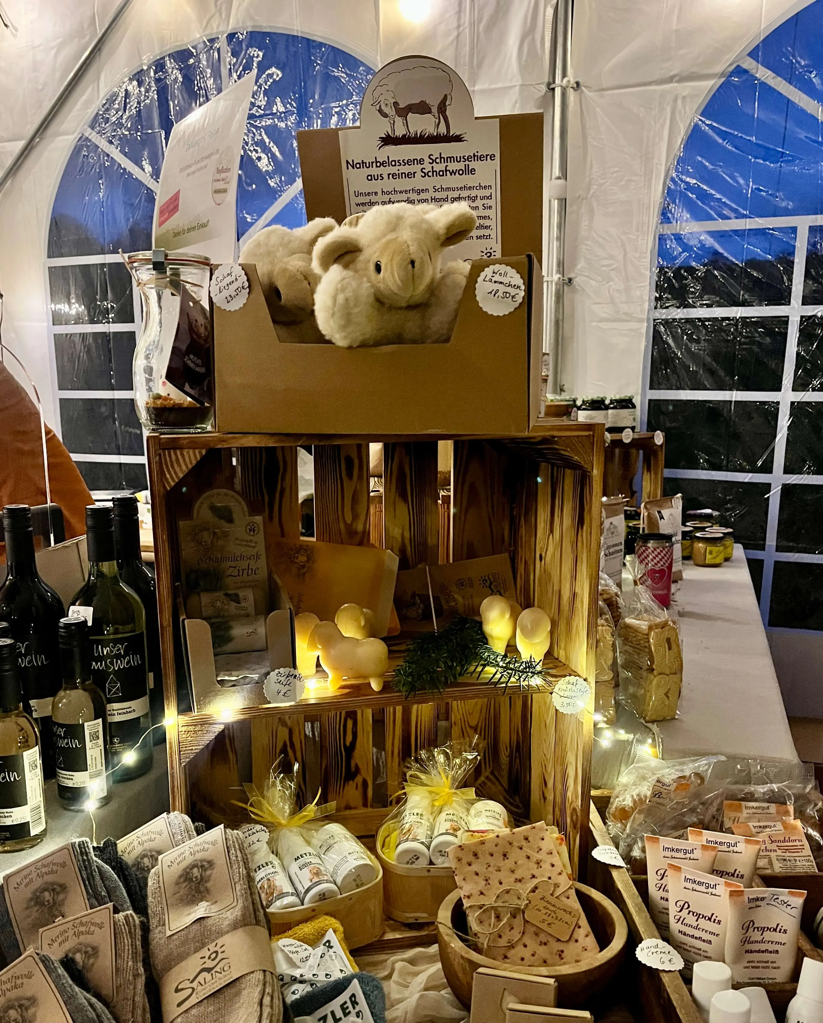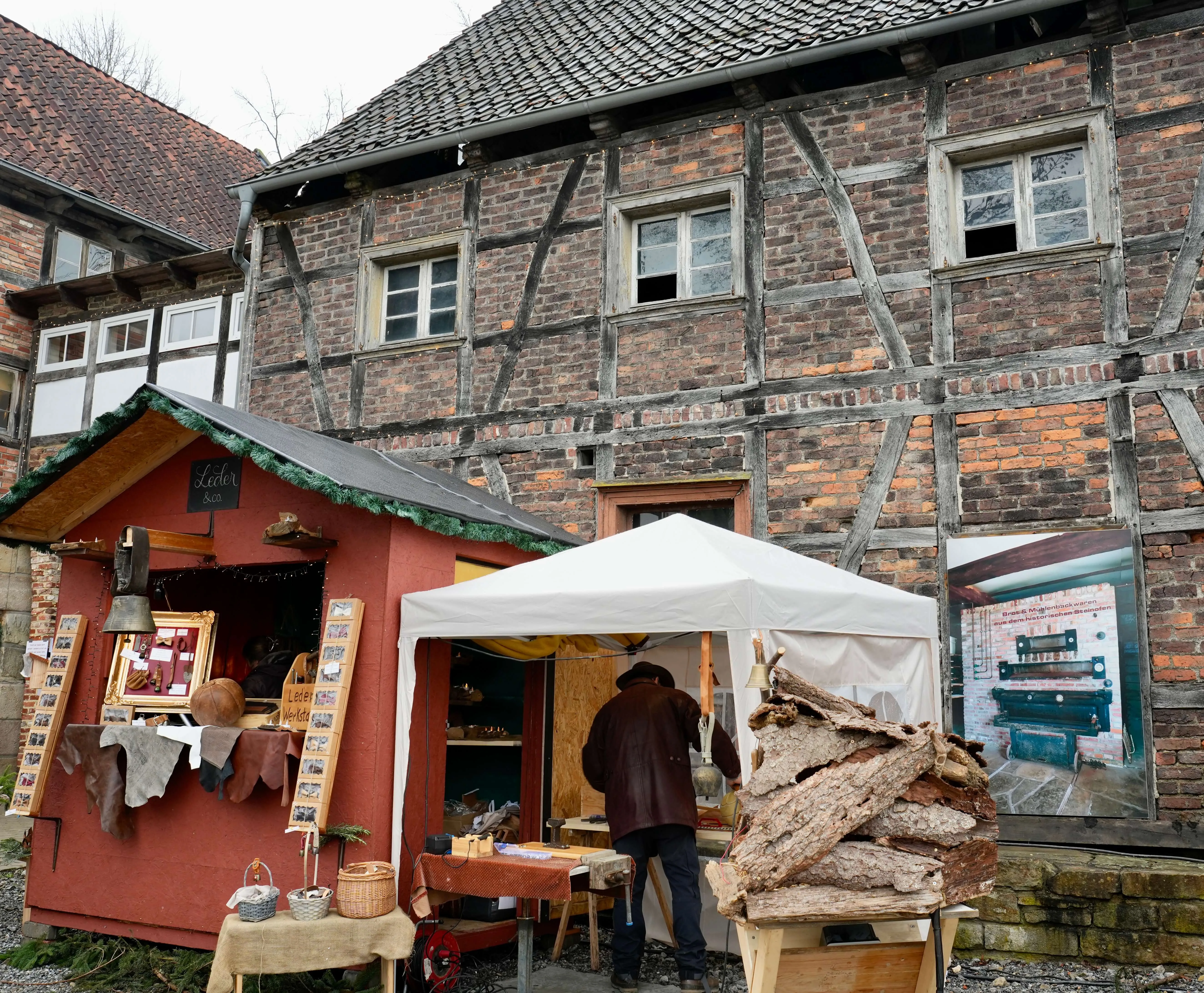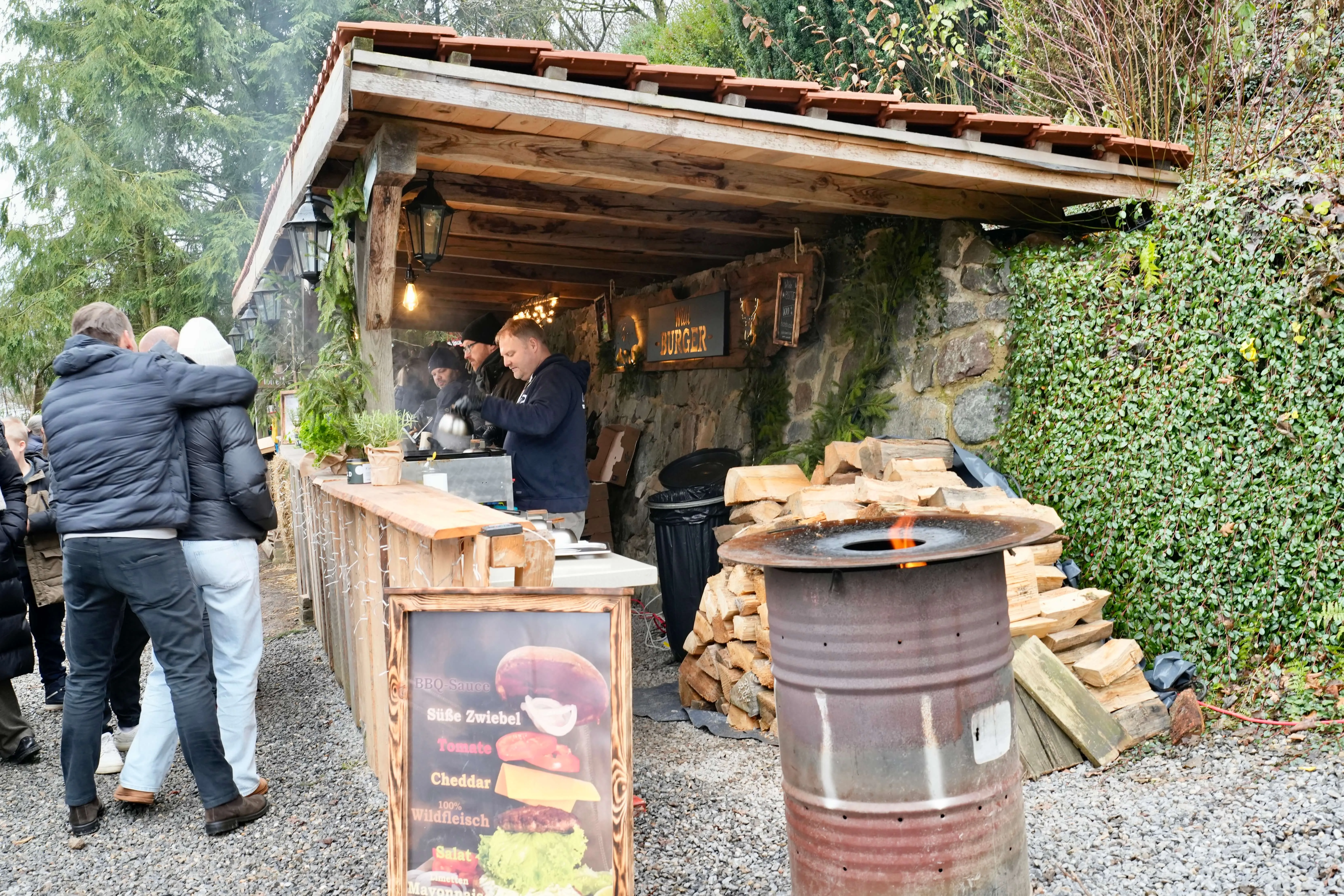 Sowohl an den liebevoll dekorierten Holzhütten als auch in den festlich geschmückten historischen Gebäuden des Mühlenhofs gab es eine abwechslungsreiche Mischung aus Kulinarischem und Kunsthandwerk. Wild-Burger und Raclette, Würstchen und Waffeln, außergewöhnliche Käsevariationen oder hausgemachte Lakritze und Konfekt wurden ebenso angeboten wie handgefertigte Dekoartikel, Tischwäsche, Floristik, Strickwaren und liebevoll gearbeitete Holzobjekte.