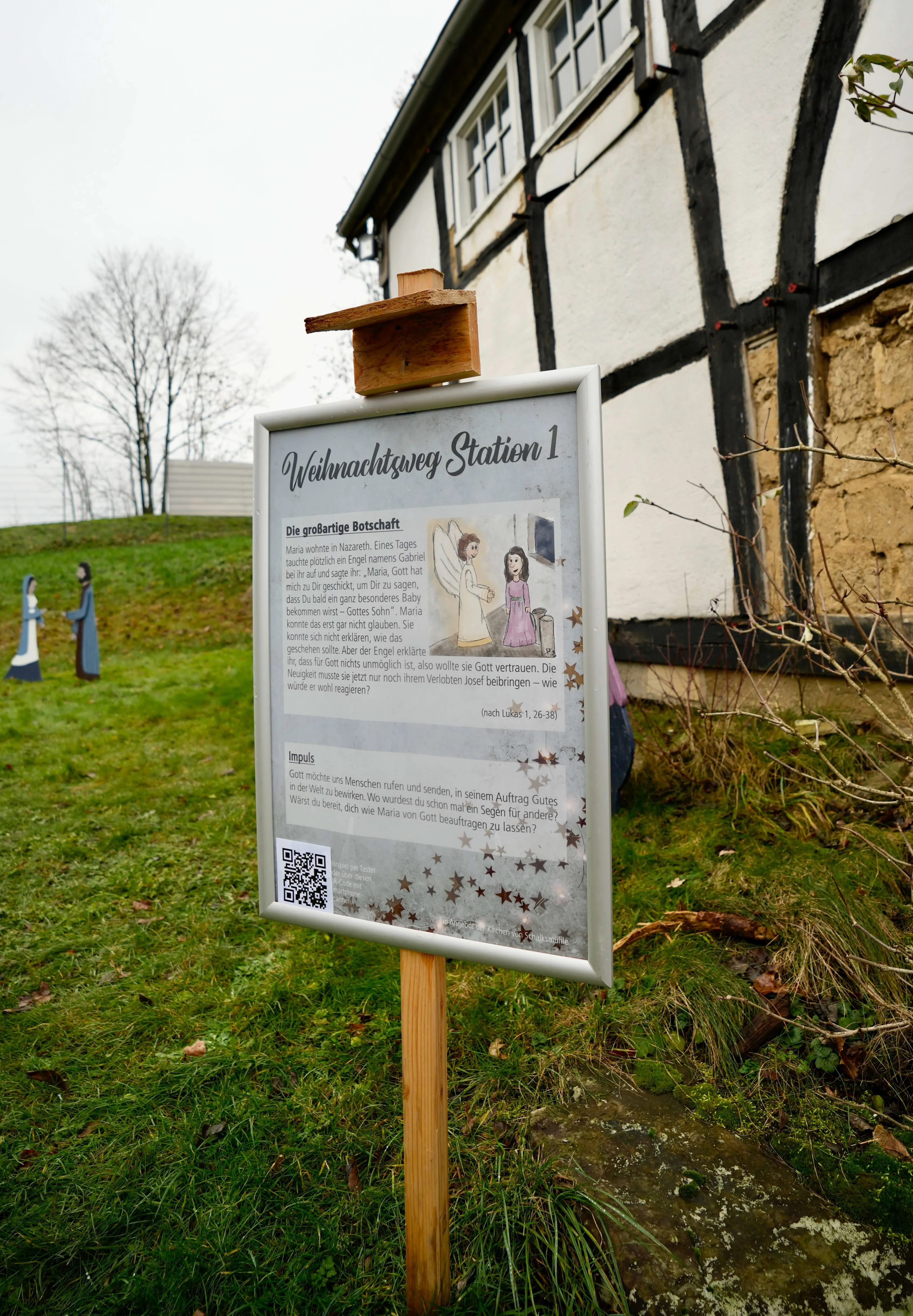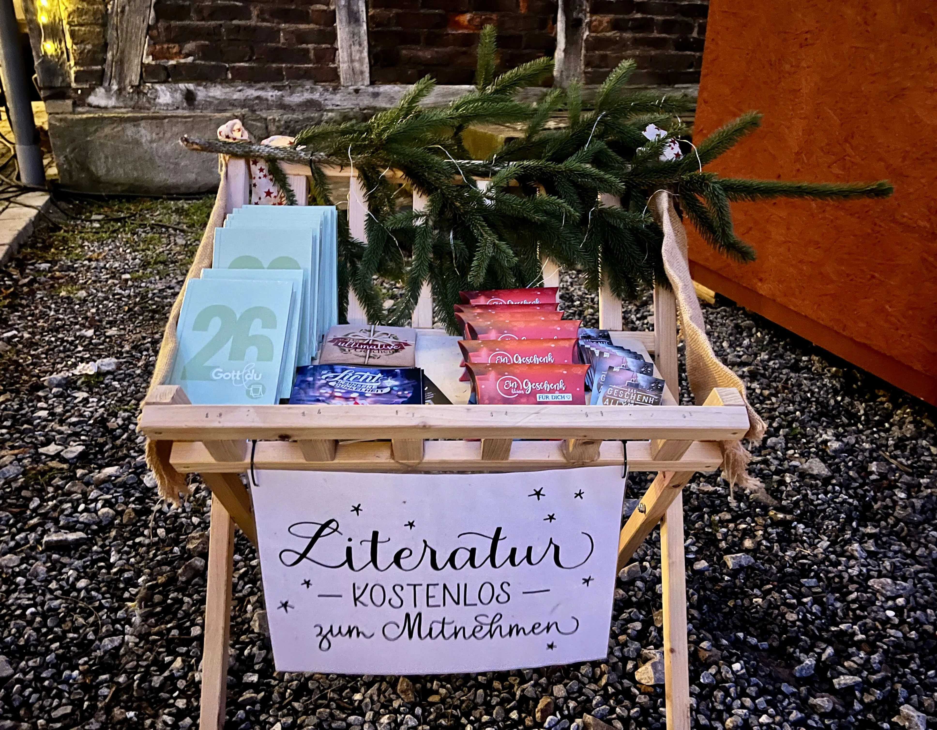 Während vielerorts Glühweinstände und Partyatmosphäre dominieren, wollte sich der gemeinnützige Verein Mühlenhof Breckerfeld e.V., der von Familien in privater Initiative getragen wird, mit seinem kleinen Weihnachtsmarkt — wie bei der Premiere 2024 — ganz bewusst von überbordendem Kommerz und importiertem "Kitsch" á la rot-weiß-bemützter Menschen, die sich wahlweise als Nikolaus oder Weihnachtsmann ausgeben, absetzen. Und so stand auf dem gesamten Gelände rund um die Mühle auch in diesem Jahr die Botschaft von Frieden und die christliche Bedeutung des Weihnachtsfestes im Mittelpunkt.