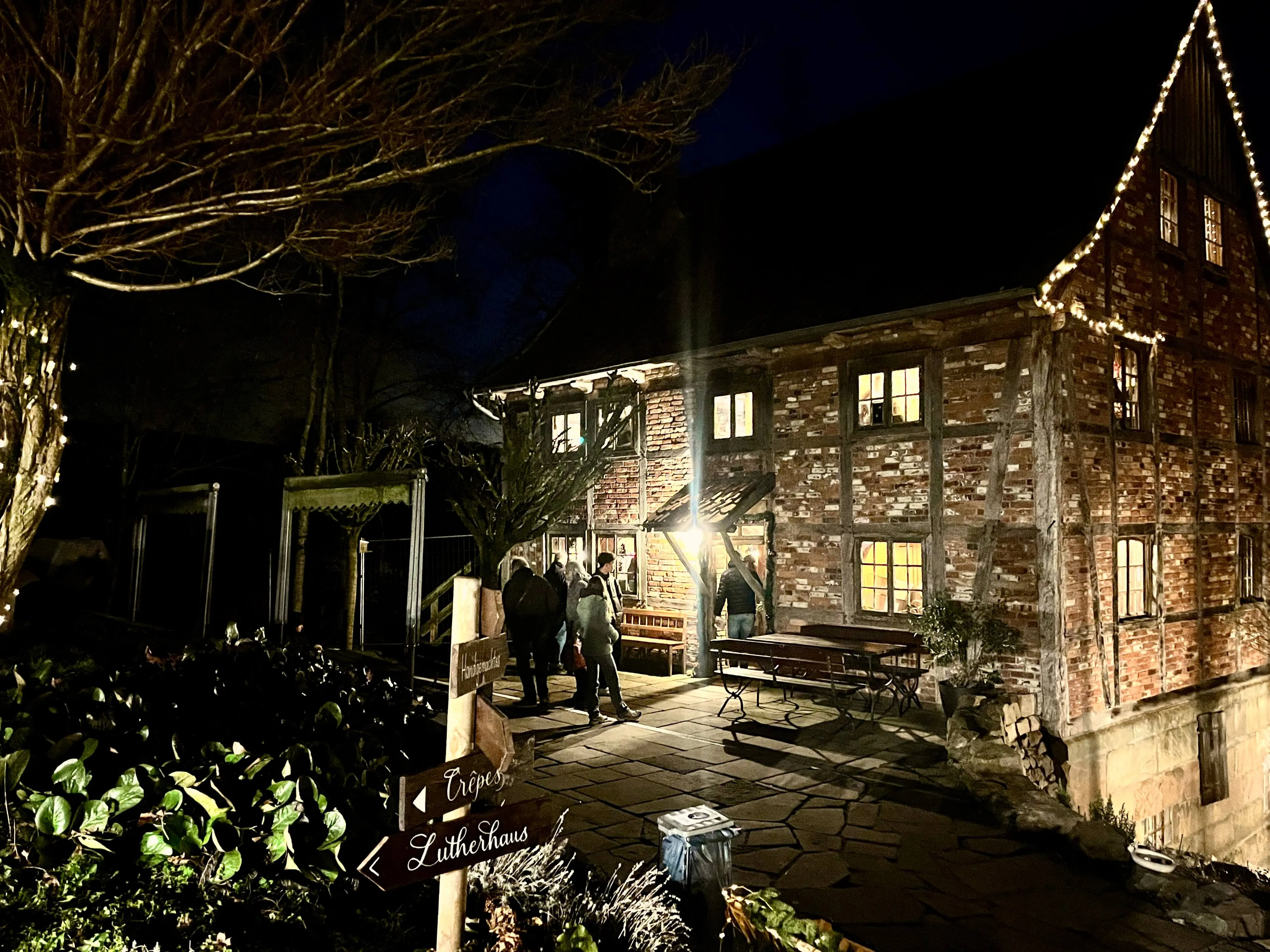 Seine ganz besondere Atmosphäre entfaltete der kleine Weihnachtsmarkt dann mit Einbruch der Dunkelheit: Lichterketten schmückten Wege, Häuser und Buden, während über allem die erleuchtete Bockwindmühle thronte — ein Anblick, der für zahlreiche Besucher zum begehrten Fotomotiv wurde.