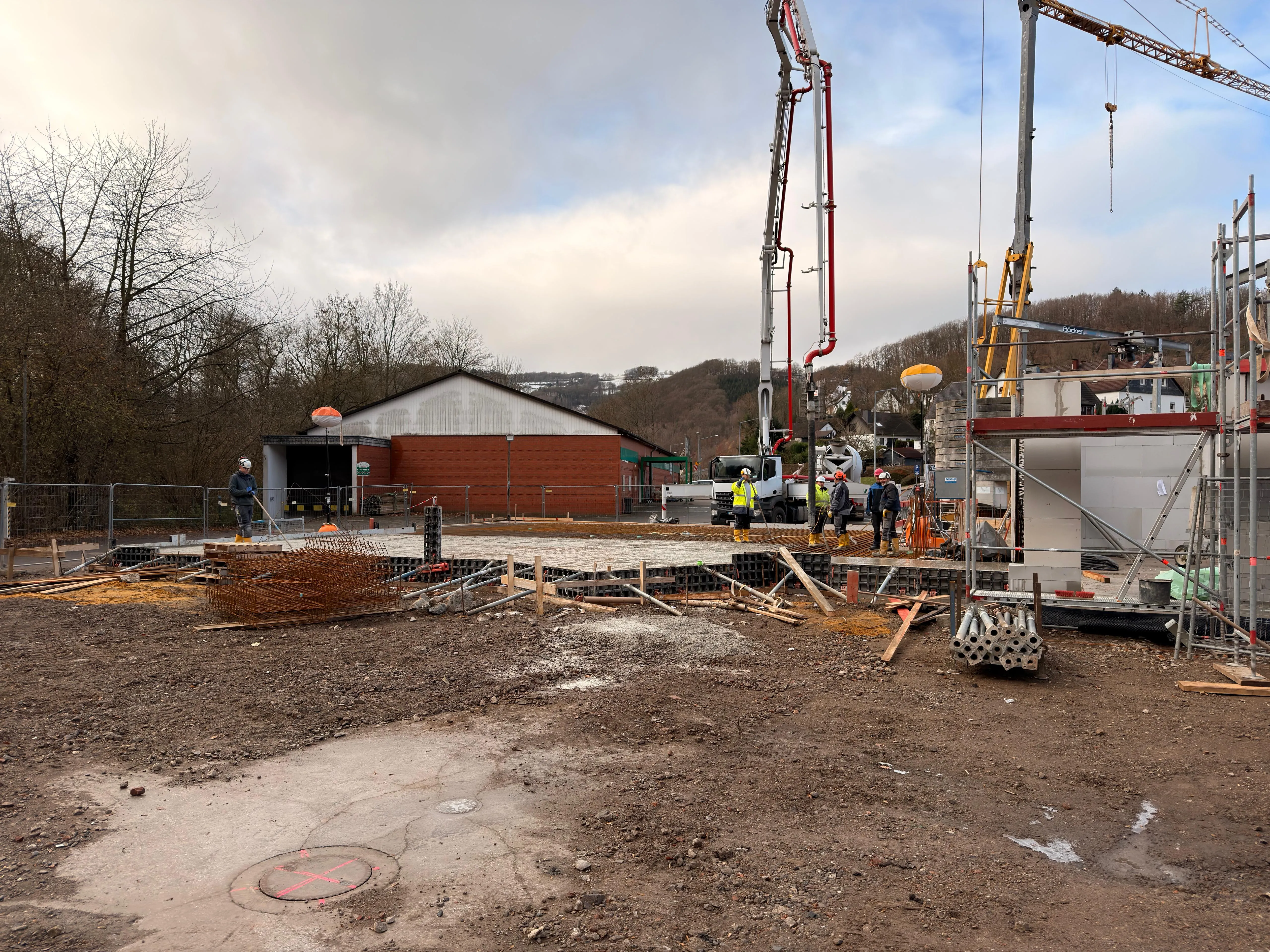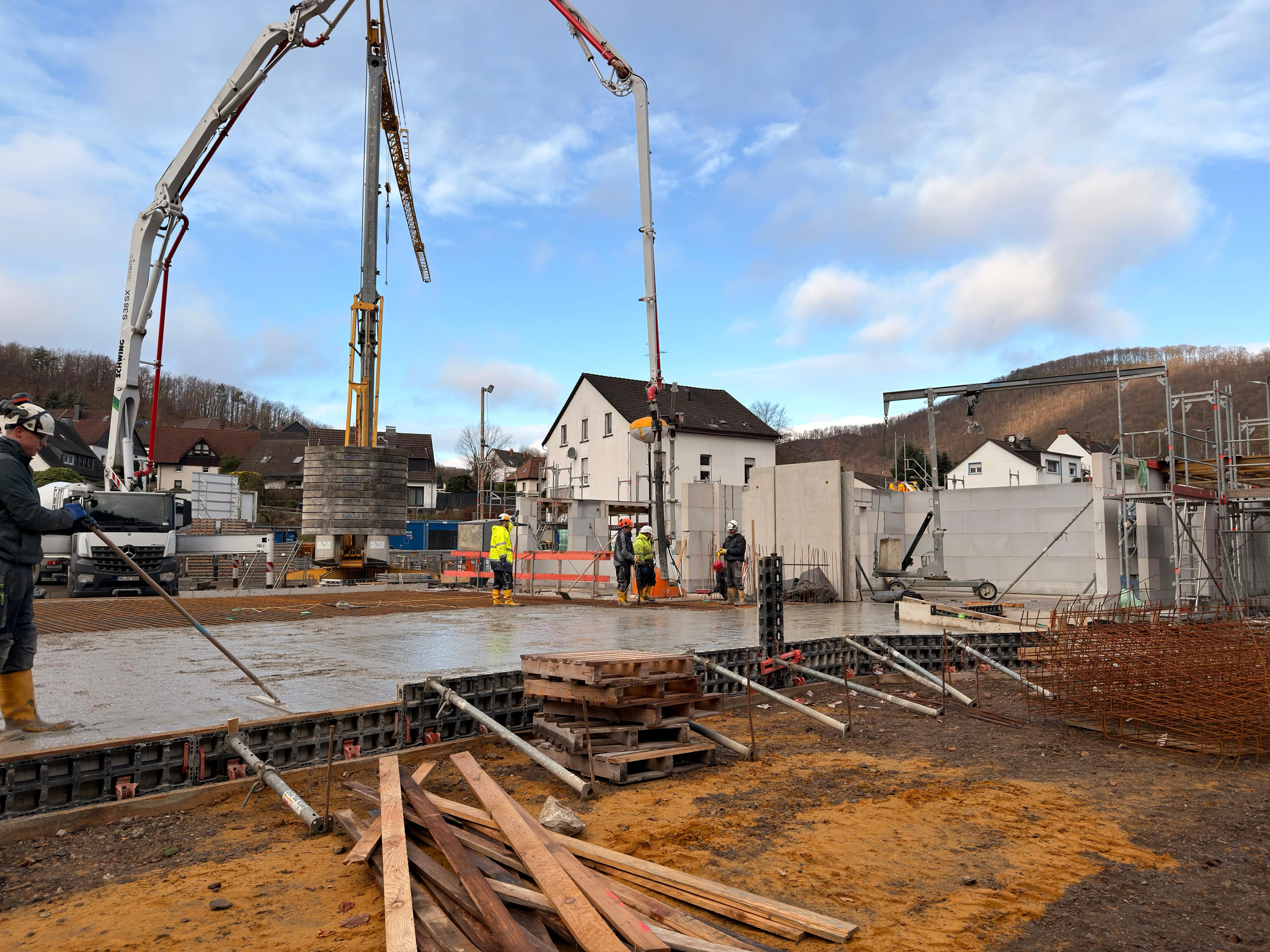 Es ist eine dieser Baustellen, bei denen der Wandel mit lautem Krachen und staubigem Hämmern sichtbar wird. Krane schwenken dicke Stahlmatten durch die Luft, Betonmischer rumpeln heran, und Arbeiter schleppen Steine und Schutt - wie eine Ameisenstraße, unermüdlich und zielgerichtet. Überall wird gehämmert, verdichtet, gemauert. Und langsam lässt sich erkennen, was hier entsteht: Ein neues Zuhause, mitten im Herzen von Nachrodt, an der Altenaer Straße 55, auf dem Gelände, das einst vom leerstehenden und verwahrlosten MPU-Gebäude geprägt war.