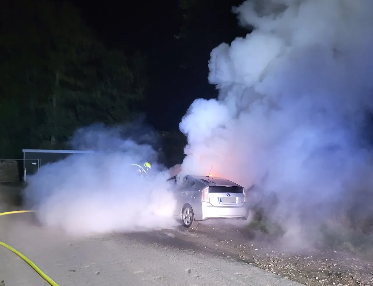 Feuerwehr im Einsatz: Brennendes Auto am Wanderparkplatz Hölterhaus