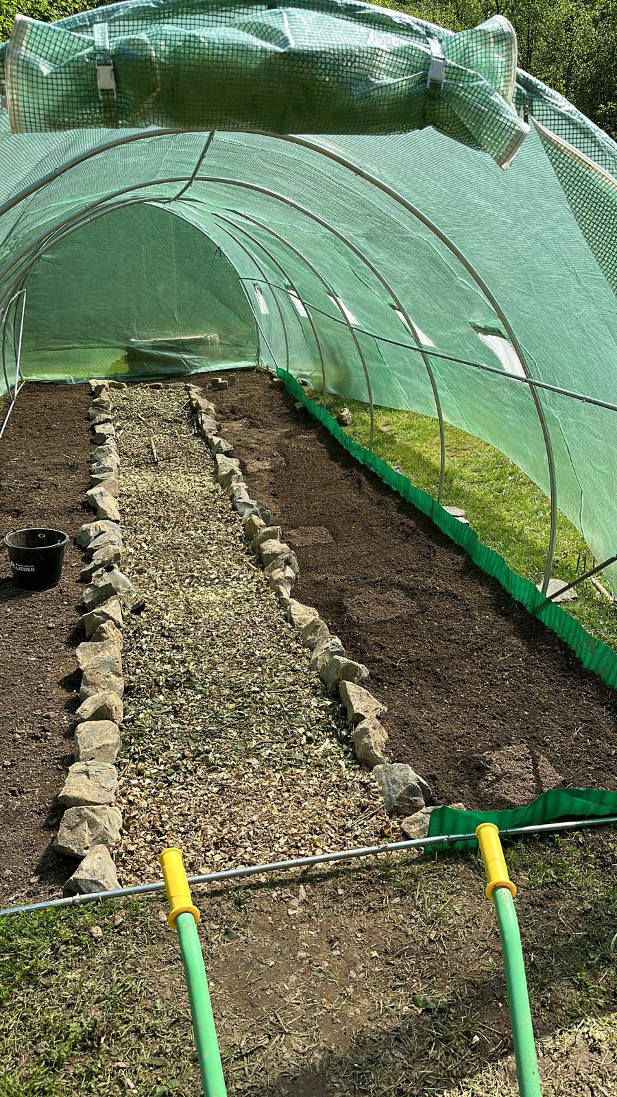 Im Herzstück – dem Foliengewächshaus – wächst alles, was vor Regen geschützt stehen muss und eine Extraportion Wärme benötigt: Paprika und Peperoni. Gurken und Tomaten. Außerdem verschiedene Kohle. Auf den Freibeeten drumherum pflanzte der Halveraner weitere Kartoffeln und Gemüsesorten an.