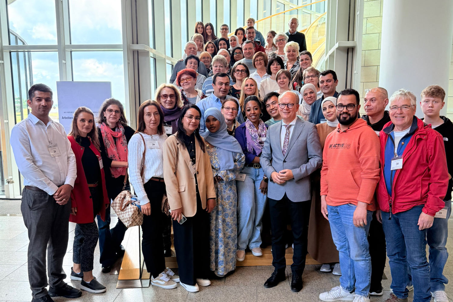 Zu diesem besonderen Besucherprogramm werden Kommunale Integrationszentren jährlich vom Ministerium für Kinder, Jugend, Familie, Gleichstellung, Flucht und Integration (MKJFGFI) eingeladen. Ziel ist es, das demokratische Verständnis und die Teilhabe von neu zugewanderten Menschen zu stärken.