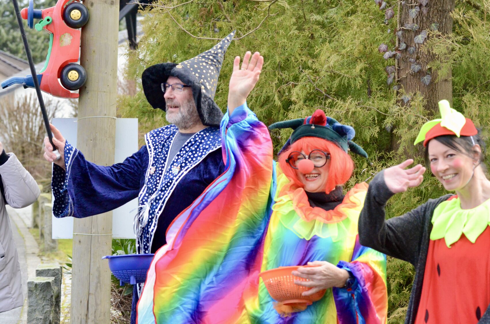 Dass sich die Anwohner größtenteils ebenso verkleiden, um den Karnevalsumzug zu bewundern und mit Süßem zu versorgen, ist Tradition. Auch für sie ist die Veranstaltung seit Jahren ein Höhepunkt. Herzliche Umarmungen am Wegesrand inklusive.